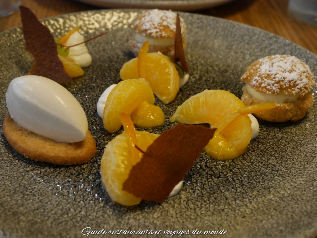 Une cuisine très appliquée d’orientation méditerranéenne, élaborée avec raffinements. Les plats se perdent parfois dans une complexité inutile. Et mériterait d’être repensé, notamment les entrées ou l’on voit le souci de mélanger goût et texture qui parfois se trouble par leurs abondances. Des goûts recherchés et pointus en revanche. Un lieu assez lambda qui manque de personnalité contrairement à la cuisine. Un carte des vins un peu triste qui ne dynamise pas vraiment le lieu et lui donne un côté plan plan.