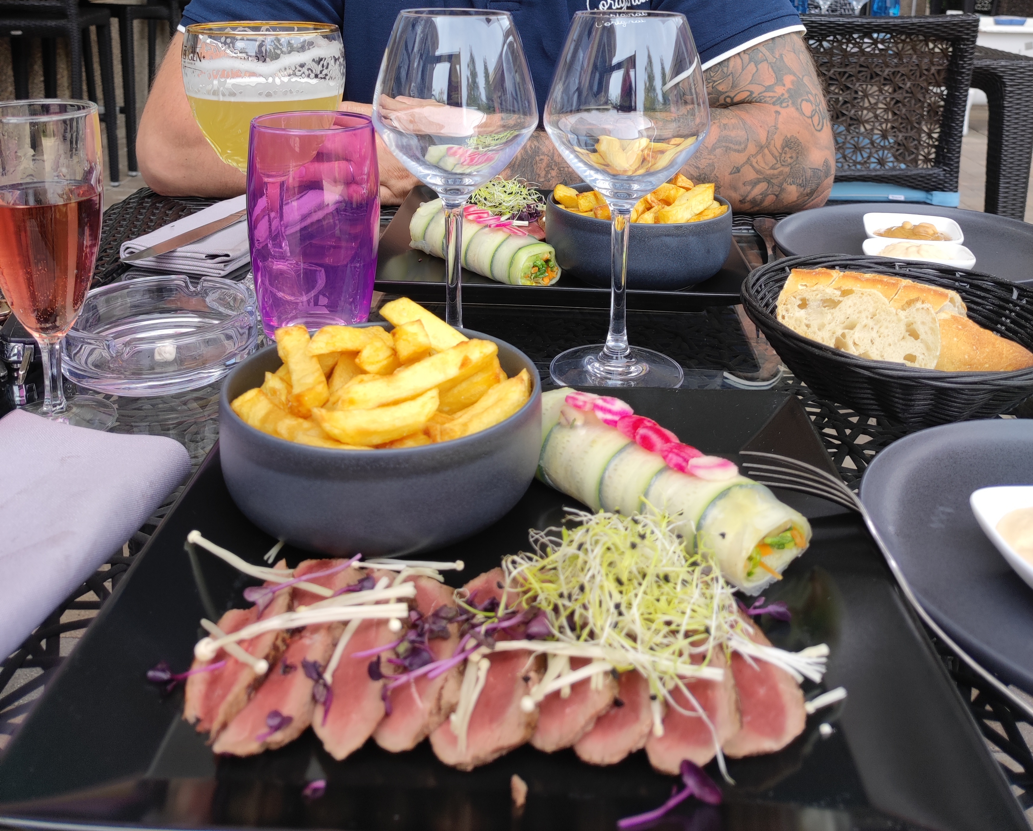 On y mange très bien, une ambiance conviviale sympa et avec l eau à côté que du bonheur !