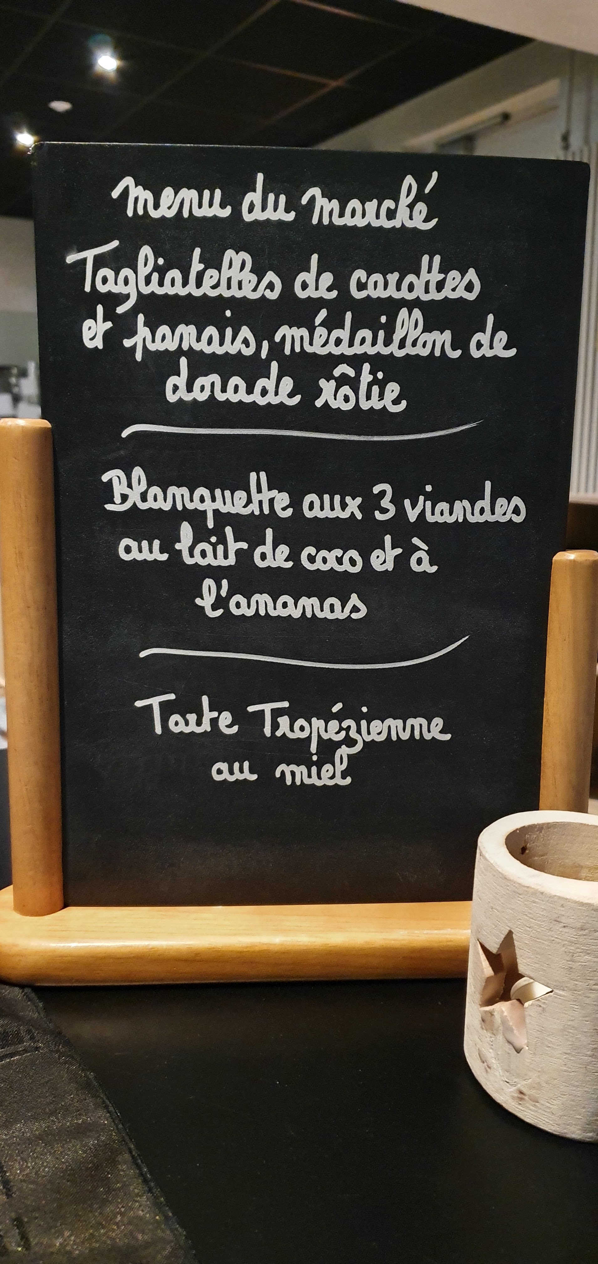Accueilli par une équipe souriante et attentive, on se retrouve dans un décor moderne. Quand vient le choix du menu, je me laisse tenter par le menu du marché : entrée + plat + dessert pour 25€ (un verre de vin ou café compris). C'est bien exécuté et bien servi. Une belle adresse que je vais garder dans mon carnet ! Si je dois faire 2 bémols : la hauteur des chaises et celle des tables n'est pas très en accord... on est un peu trop haut et on doit se plier pour manger. Le deuxième point... le dessert était une tropézienne... malheureusement (ou heureusement pour moi) je connais les vraies tropéziennes, celles de Mika... et je suis donc toujours déçu même si je mange un bon gâteau 😜