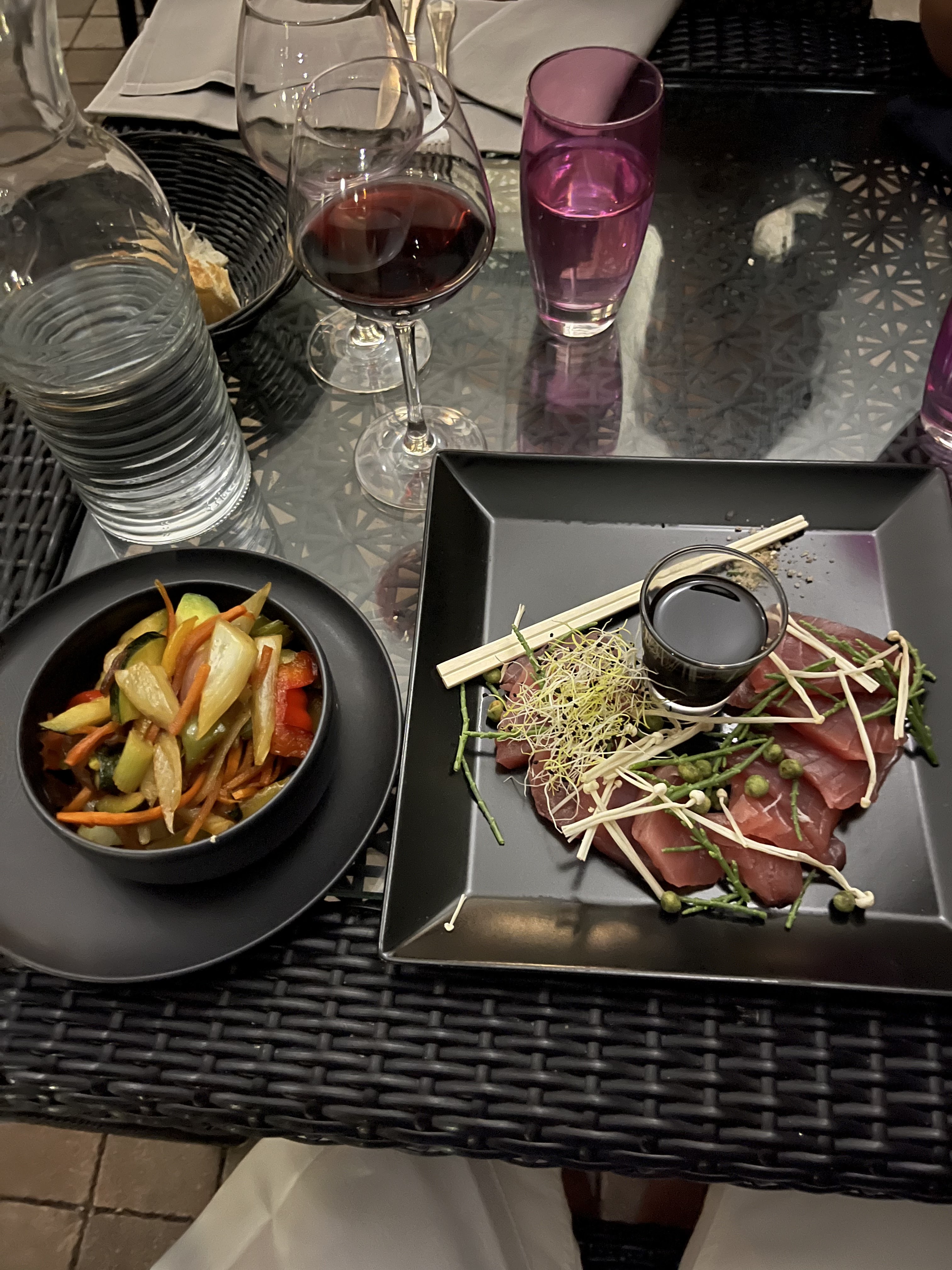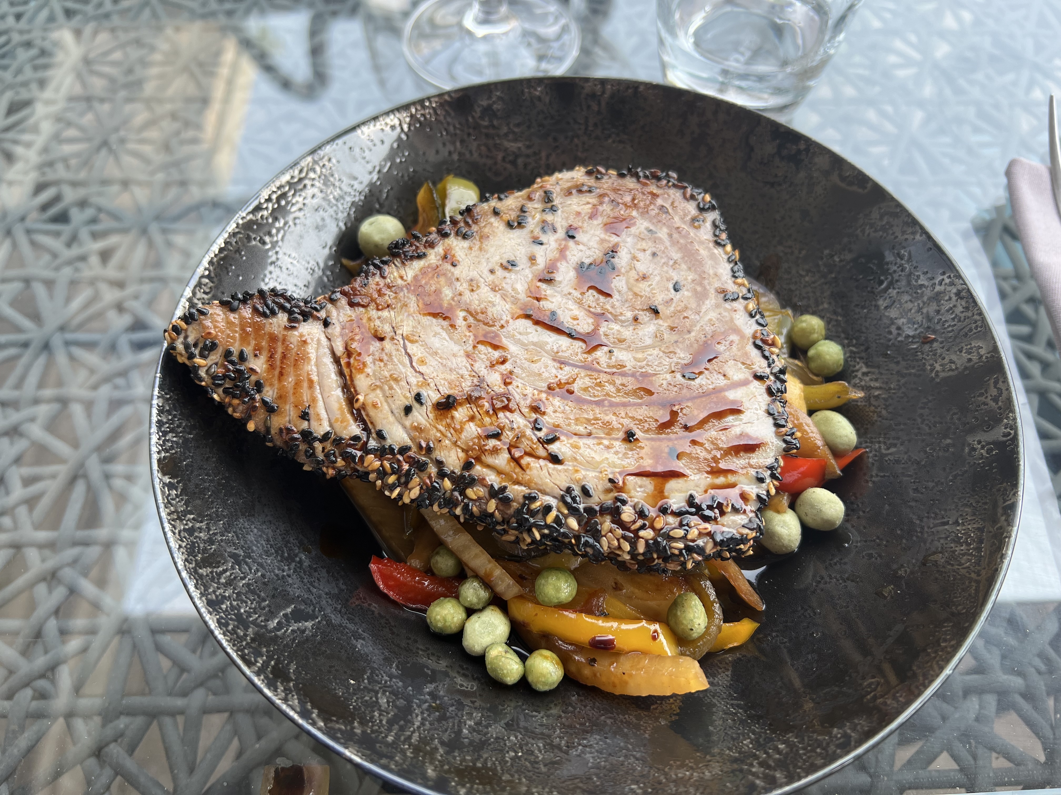 Des plats préparés par la maison avec des produits frais . Un très beau cadre en terrasse . Personnel très sympathique et réactif malgré le monde . Je recommande les yeux fermés . J'y retournerais avec grand plaisir pour déguster leurs plats à base de poisson car étant enceinte je n'ai pas pu goûtée malheureusement 😟 Très bonne adresse pour les dîner romantique ou même familiale 👍👍👍👍