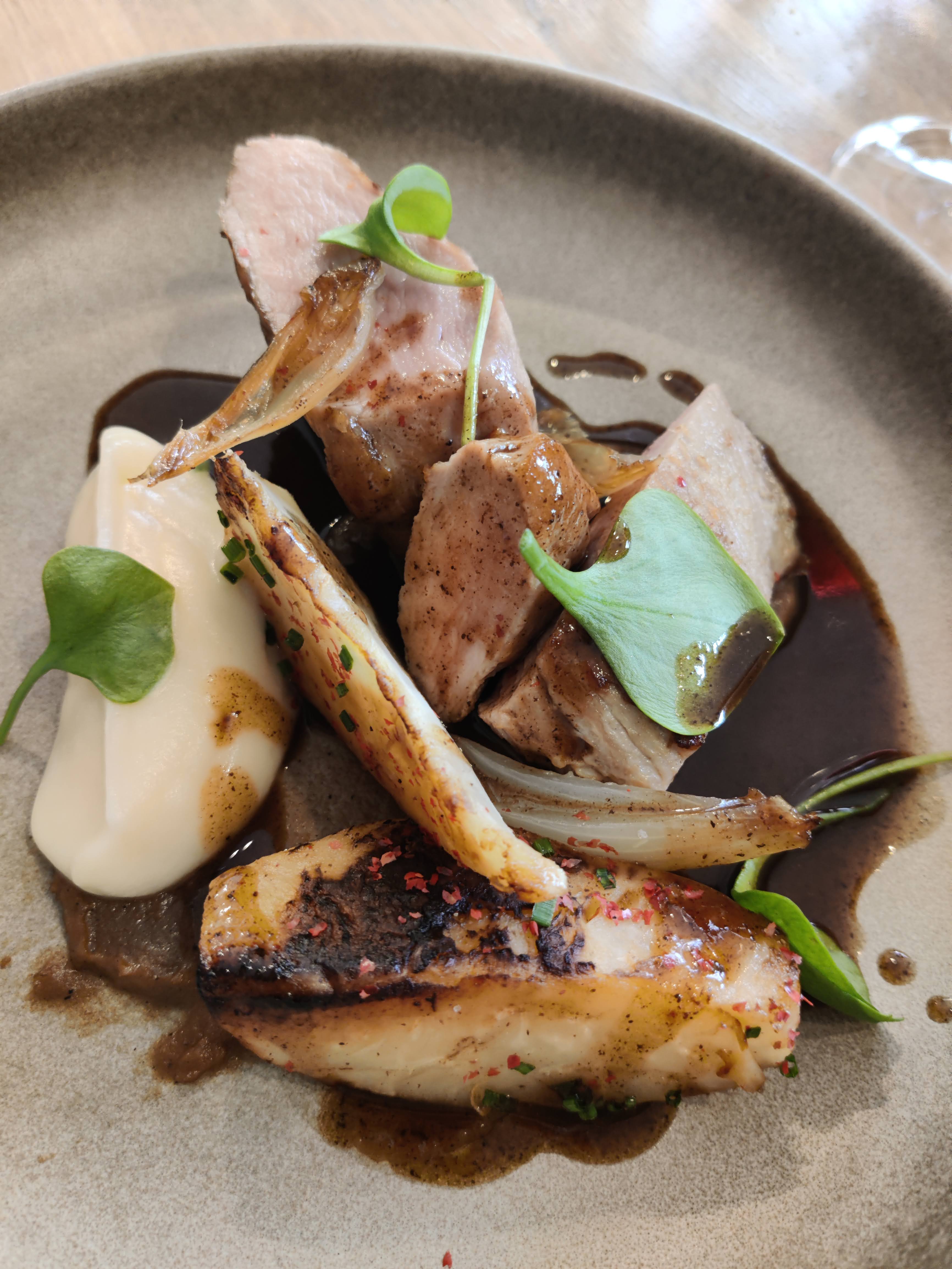 Très joli petit restaurant à la déco sobre et soignée, belle vaisselle, accueil et service parfaits. Plats aux accords culinaires étonnants et recherchés, mets exquis et cuisinés avec talent par la cheffe cuisinière (cuisson, température au service impeccables), présentation raffinée des mets dans les assiettes. On aimerait juste que les quantités soient ajustées à la hausse pour profiter d'une dégustation moins brève des saveurs. La venue à la table des deux talentueux restaurateurs pour un court échange personnalisé a été appréciée. Longue et belle carrière à eux !