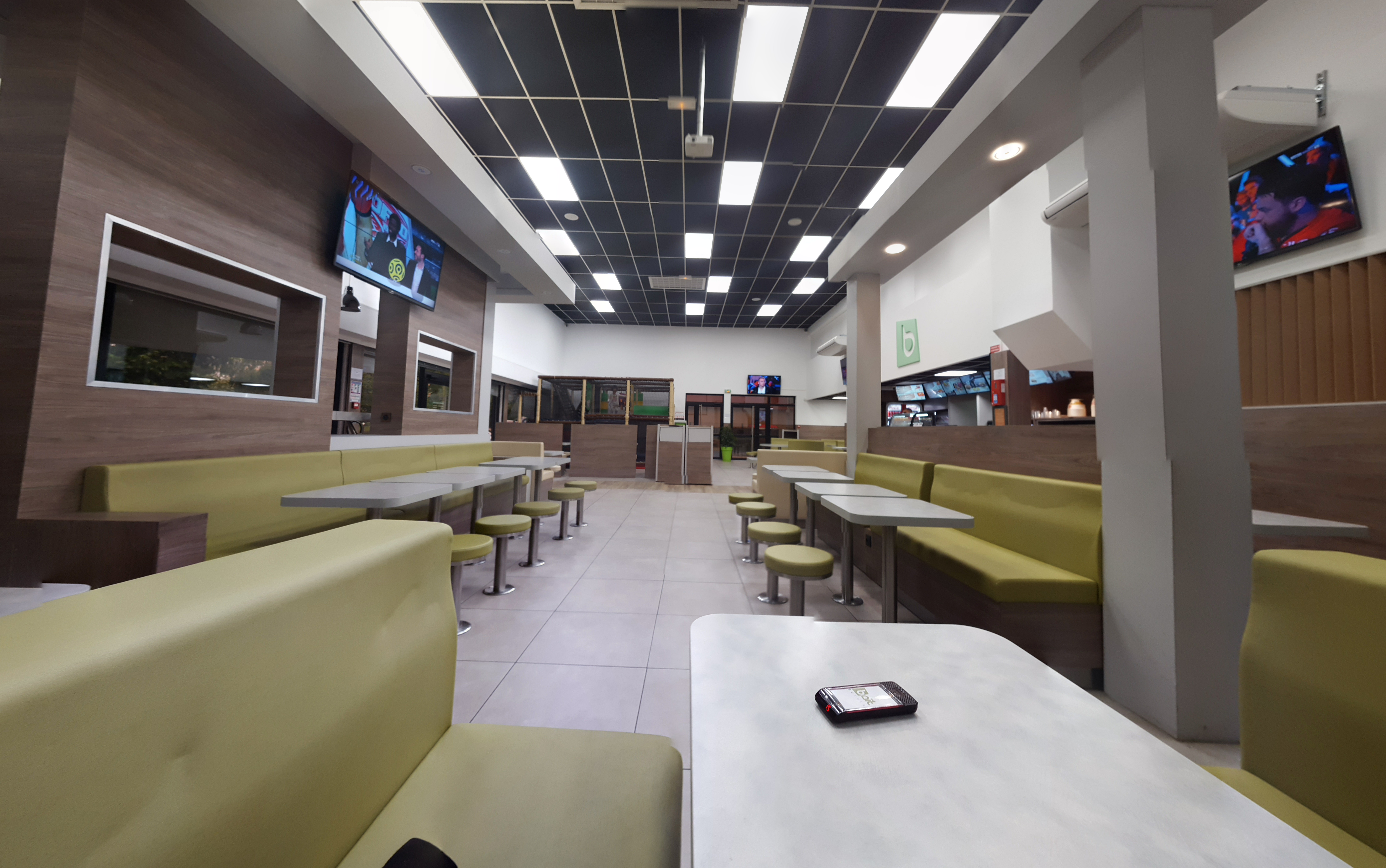 Lieu propre et mobilier moderne avec petit coin jeux pour les enfants ce qui est chouette pour garder un oeil sur eux le temps d'une pause repas. Les burgers sont très bon et consistant pour un prix mini! L'équipe est toujours souriante et très aimable. Bref un super fast-food :-)