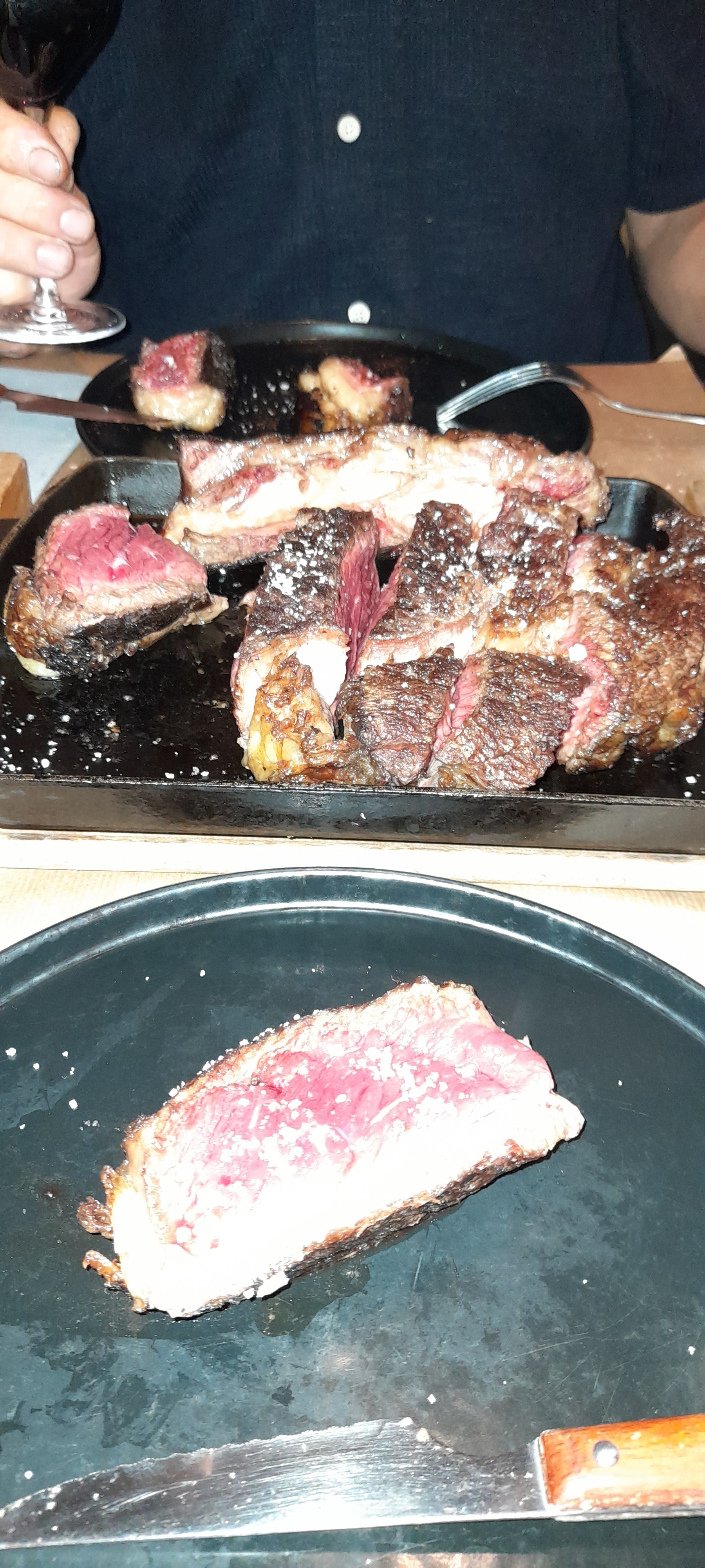 Avis mitigé car nous avions réservé mais en arrivant sur place on nous annonce qu'ils ne trouvent pas notre réservation. Ils nous ont quand même places en terrasse ce que nous avons appréciés. Nous avons spris une côte de bœuf que nous avons delà de saignante et elle est arrivé quasiment à point. Elle est servie avec des frites il manquerait quelques feuilles de salade pour l'accompagner. Les serveurs ont été toutefois agréable tout le service.