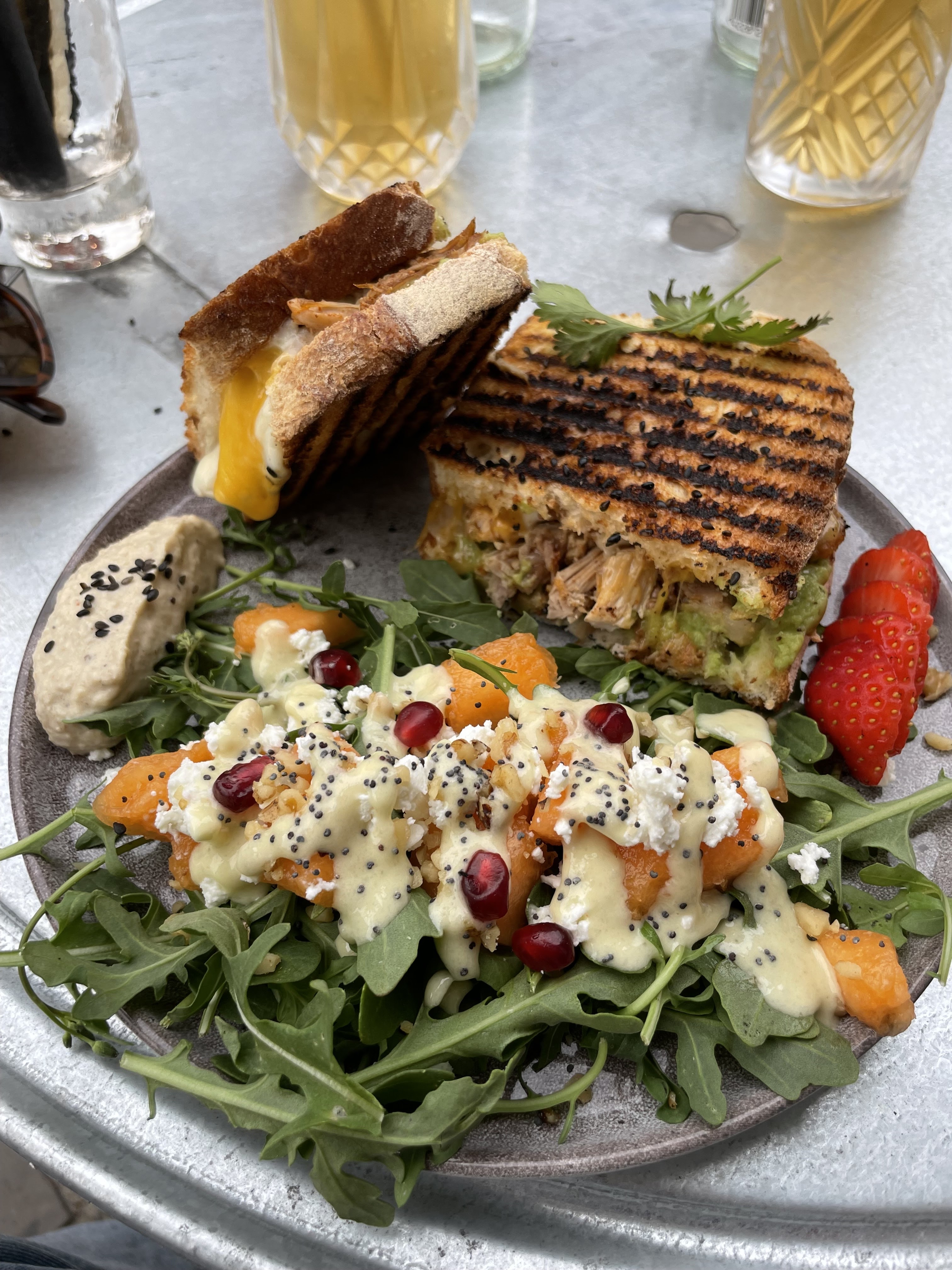 Un petit restaurant très bien décoré et à ne pas manquer ! J'ai eu un très bon grilled cheese végétarien avec du pesto, des tomates séchées et de la mozzarella, accompagné d'une salade de roquettes. Très casual comme on dirait aux États-Unis. Merci Gaëtan et Antoine !