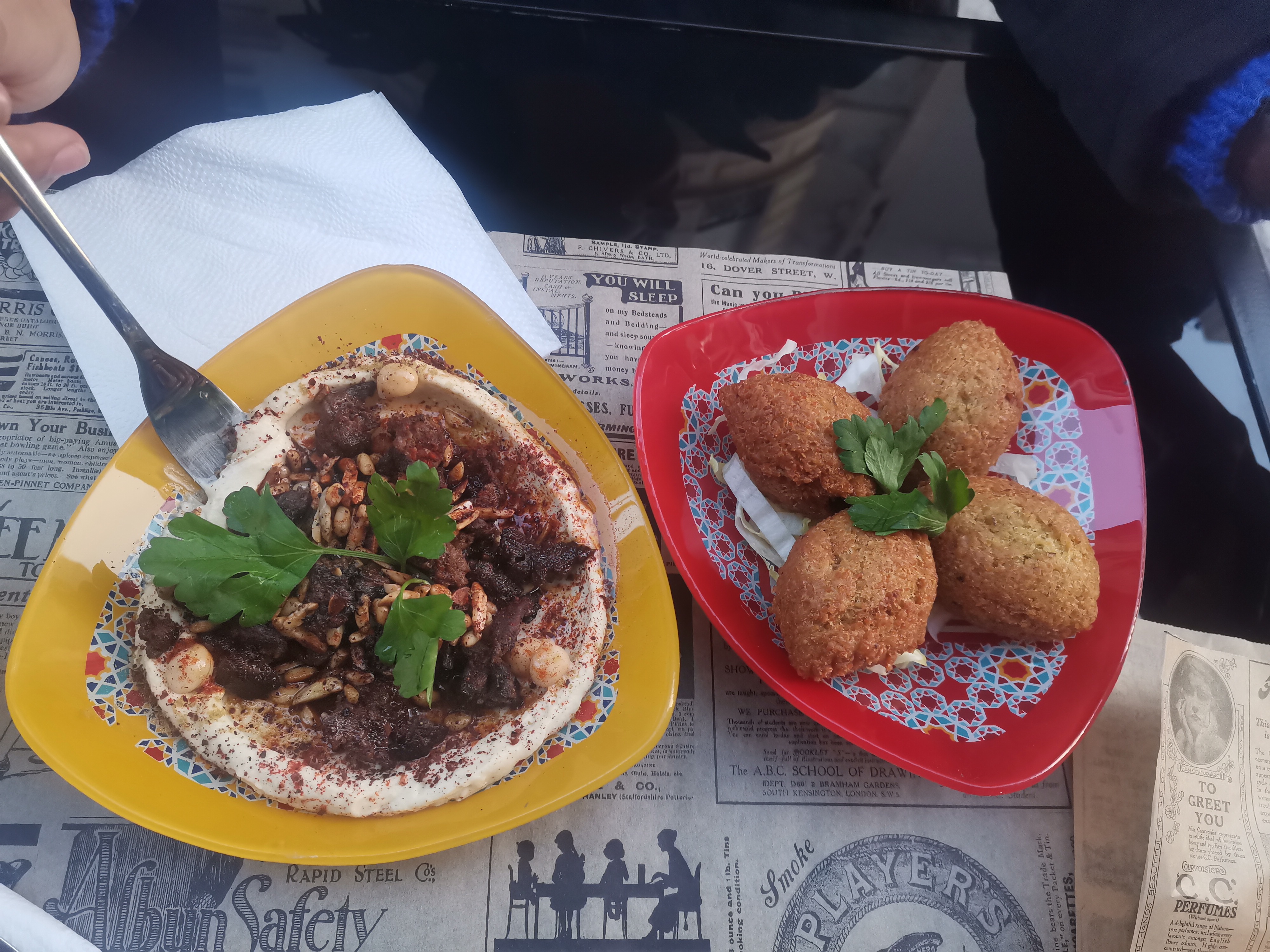 Découverte de Baladna autour d'une Mankoucha au thym rouge (délicieuse) et d'un plat de falafel incroyablement savoureux (et pas gras!)! Bravo et Merci!