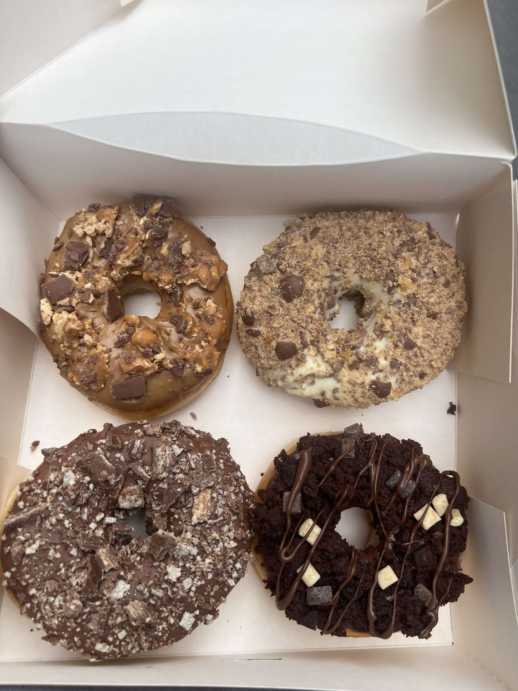 Les glaçages des donuts sont beaucoup trop sucrés et la pâte des donuts ne semble pas être faite maison mais de manière industrielle. Il existe de délicieux donuts comme ceux de Boneshaker, à prendre en exemple.