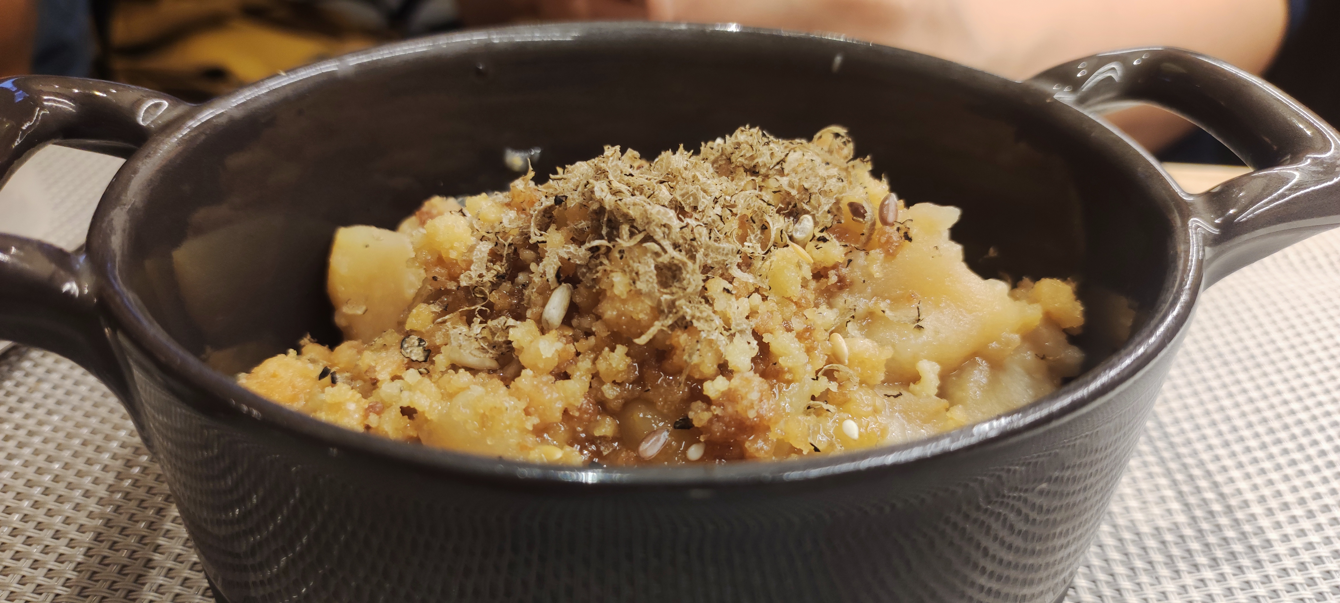 Nous avons pris l'aubergine- Risotto aux truffes. C'était excellent. Pleins de saveurs. Idem pour le crumble en dessert. Et des serveurs au top !