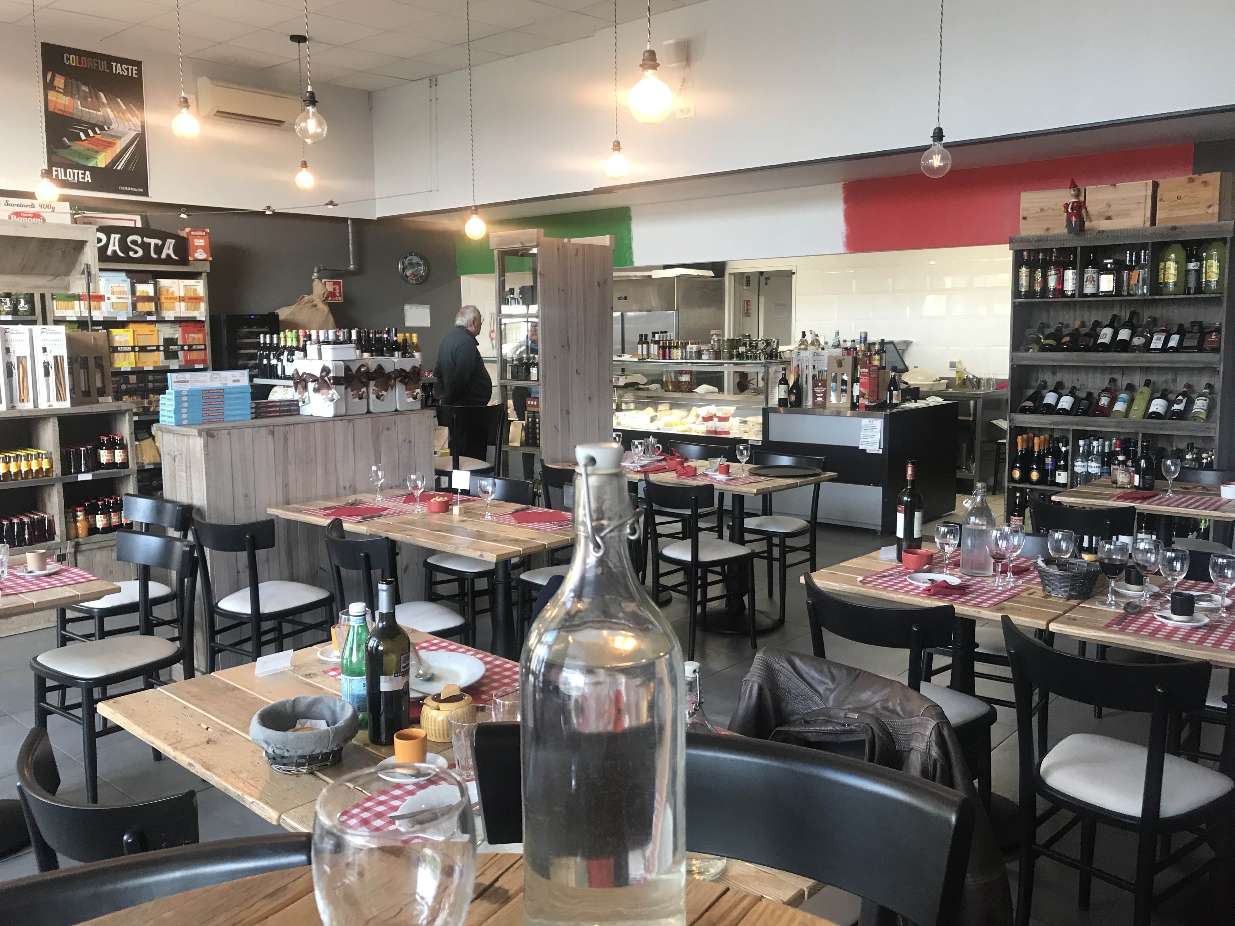 Patrons agréables qui expliquent l origine des plats et grand sélection de produits italiens comme si on y était...très bons vins également.....