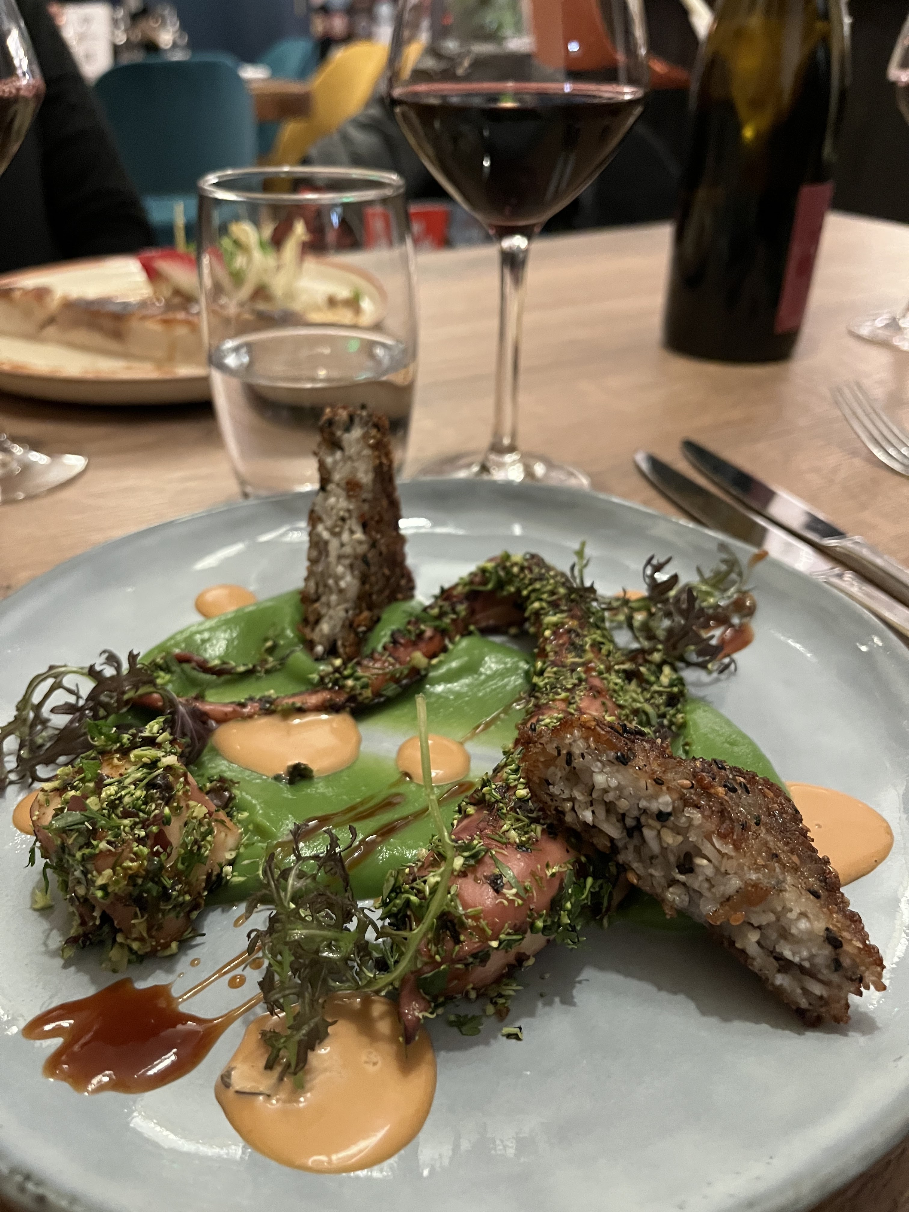 Une excellente découverte! L'entrée signature du chef (le poulpe) est une tuerie. Cadre superbe, service aux petits oignons et last but not least, les toilettes valent le coup d'œil 😄