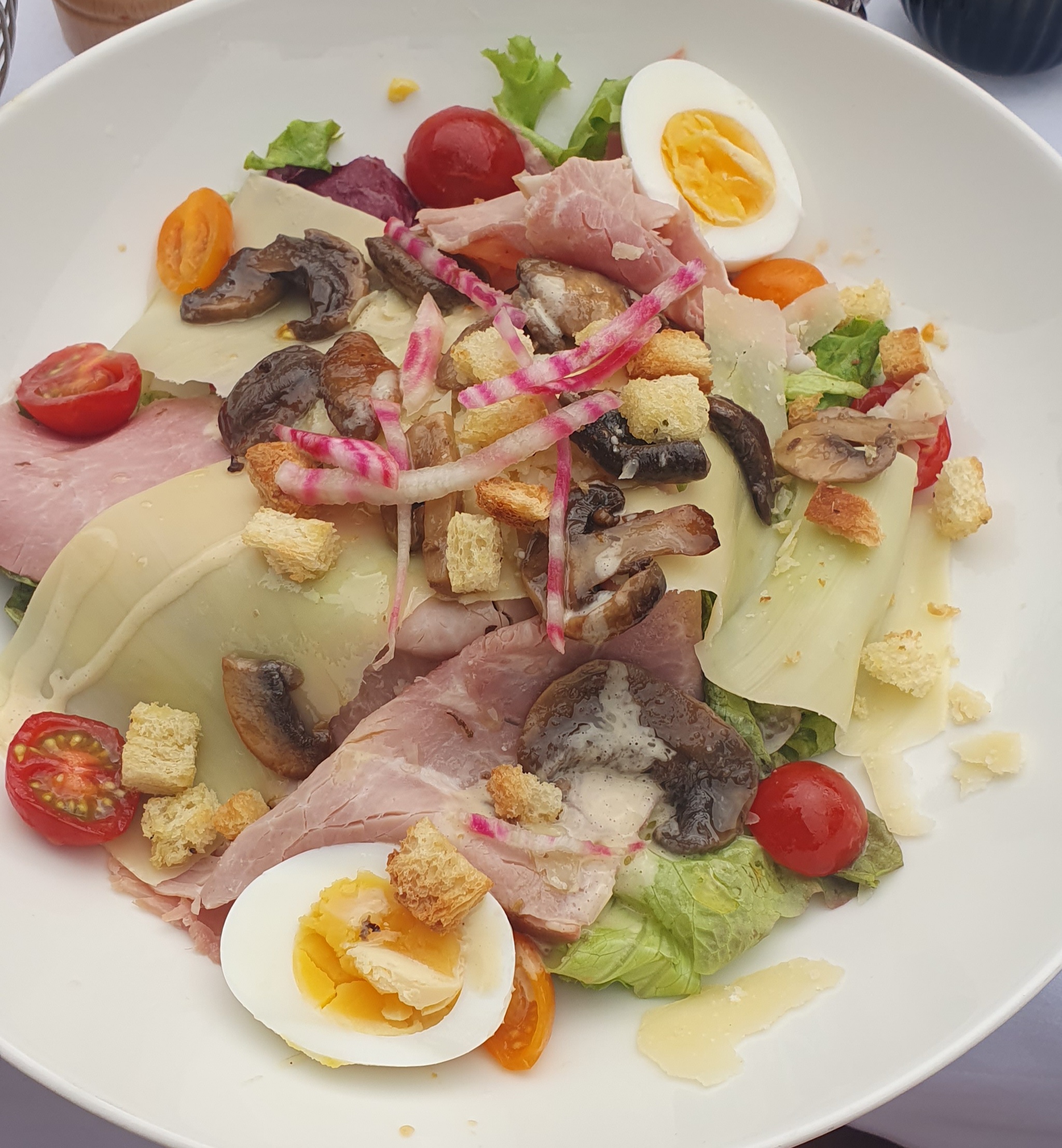 Emplacement ensoleillé top ! Mais je ne savais pas que ça avait un prix 23 euros. Ça ne me dérange pas de payer tant que je suis satisfait ! Salade César : 2 ingrédients salade verte et quelques morceaux de poulet ! Loin de la salade gourmande que j’attendais ! On reste sur sa faim ! Que du business…