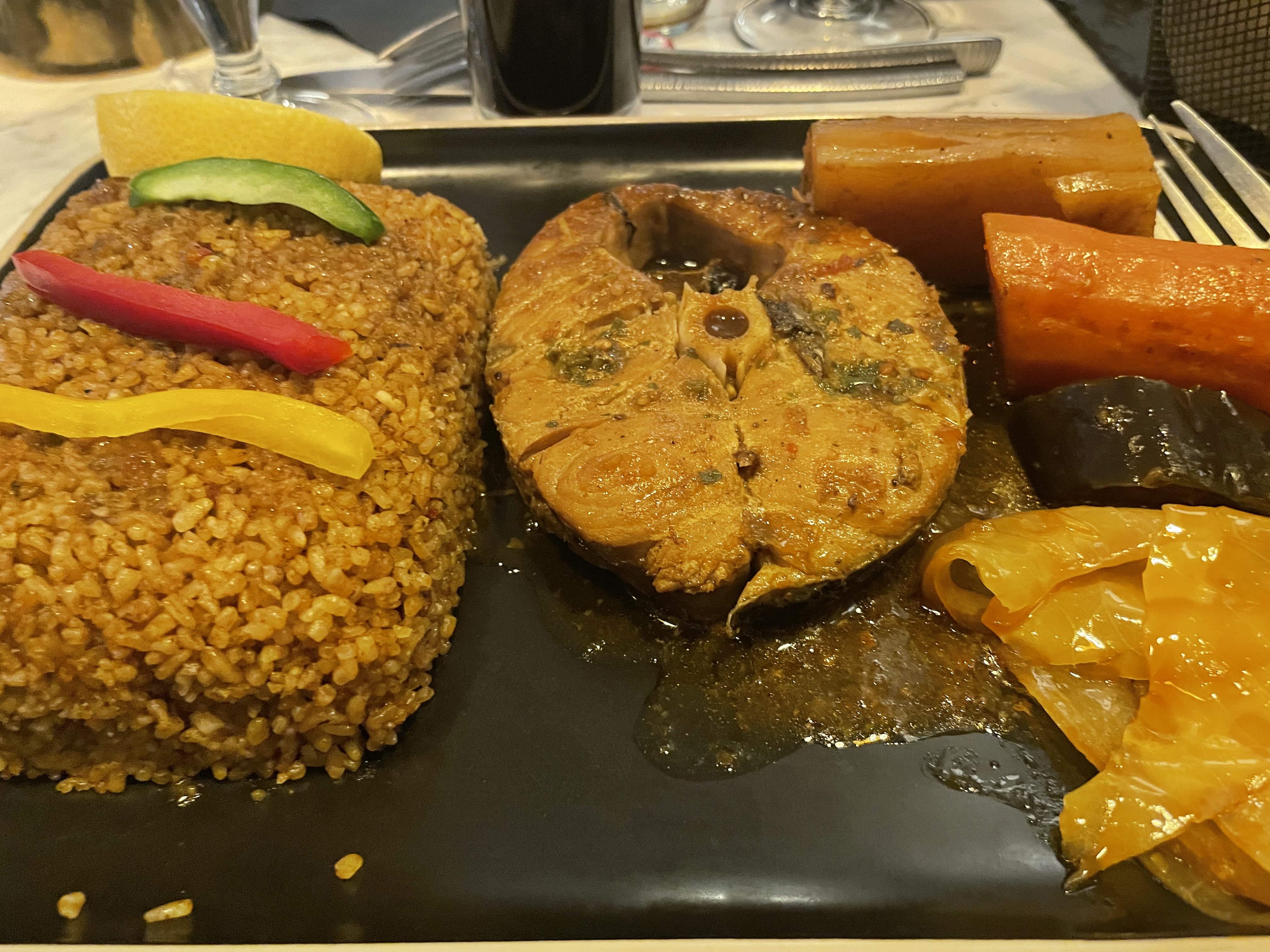 Super restaurant le serveur est très Agréable et la nourriture est bonne mention spéciale pour les pastels qui sont d’un délice sans nom le thieb était bon mais le manioc avait l’air un peu dure à part ça tout était bon du début à la fin