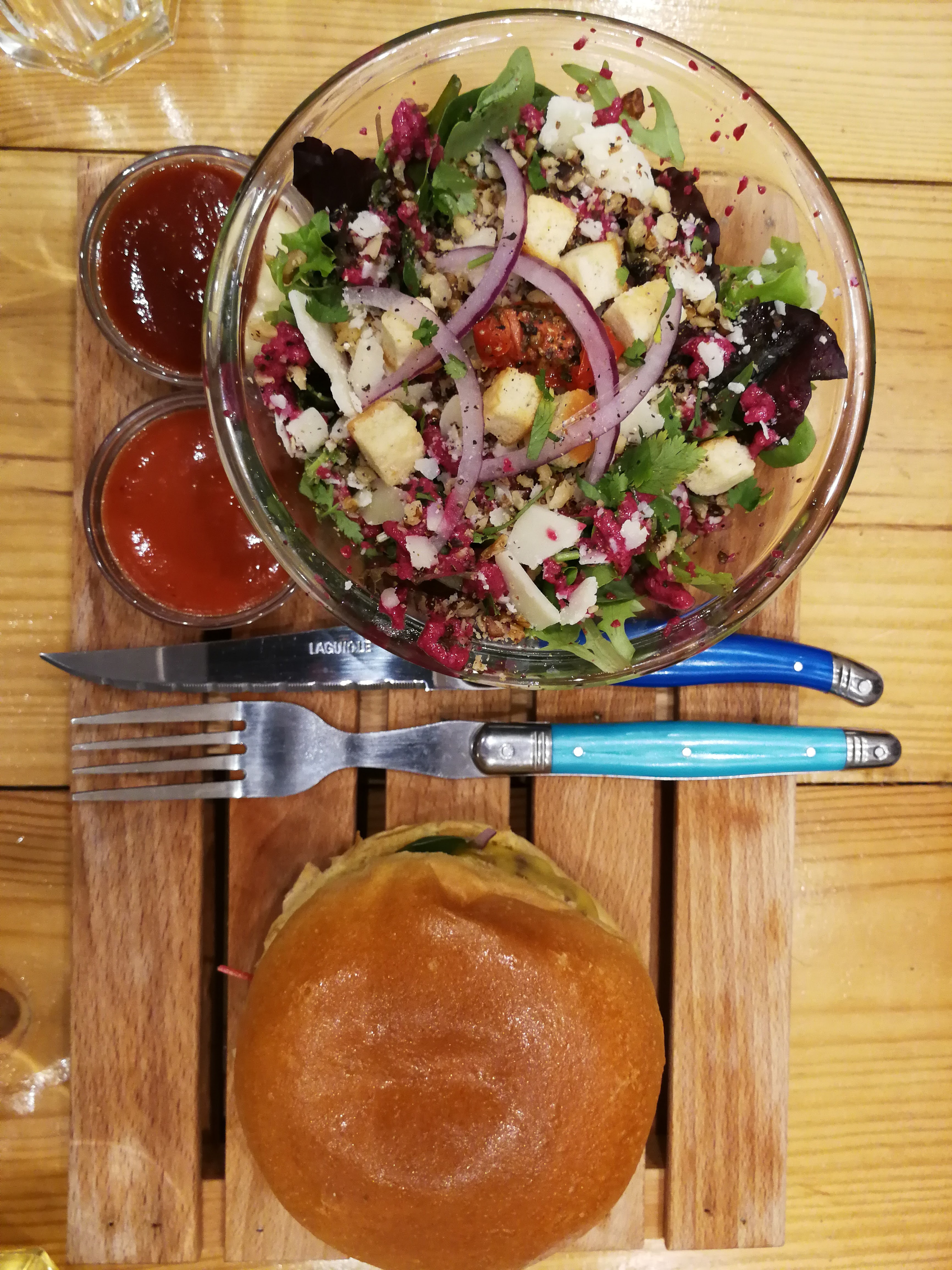 Bon accueil, petit restaurant décoré avec goût, tout est fait maison ! TOUT ... Frites fraîches un peu trop cuitent, et beaucoup trop salées, le burger veggie plutôt bon avec son steack végétal maison bien-sûr, facture comme les frites, un peu salée, mais un bon établissement a tester.