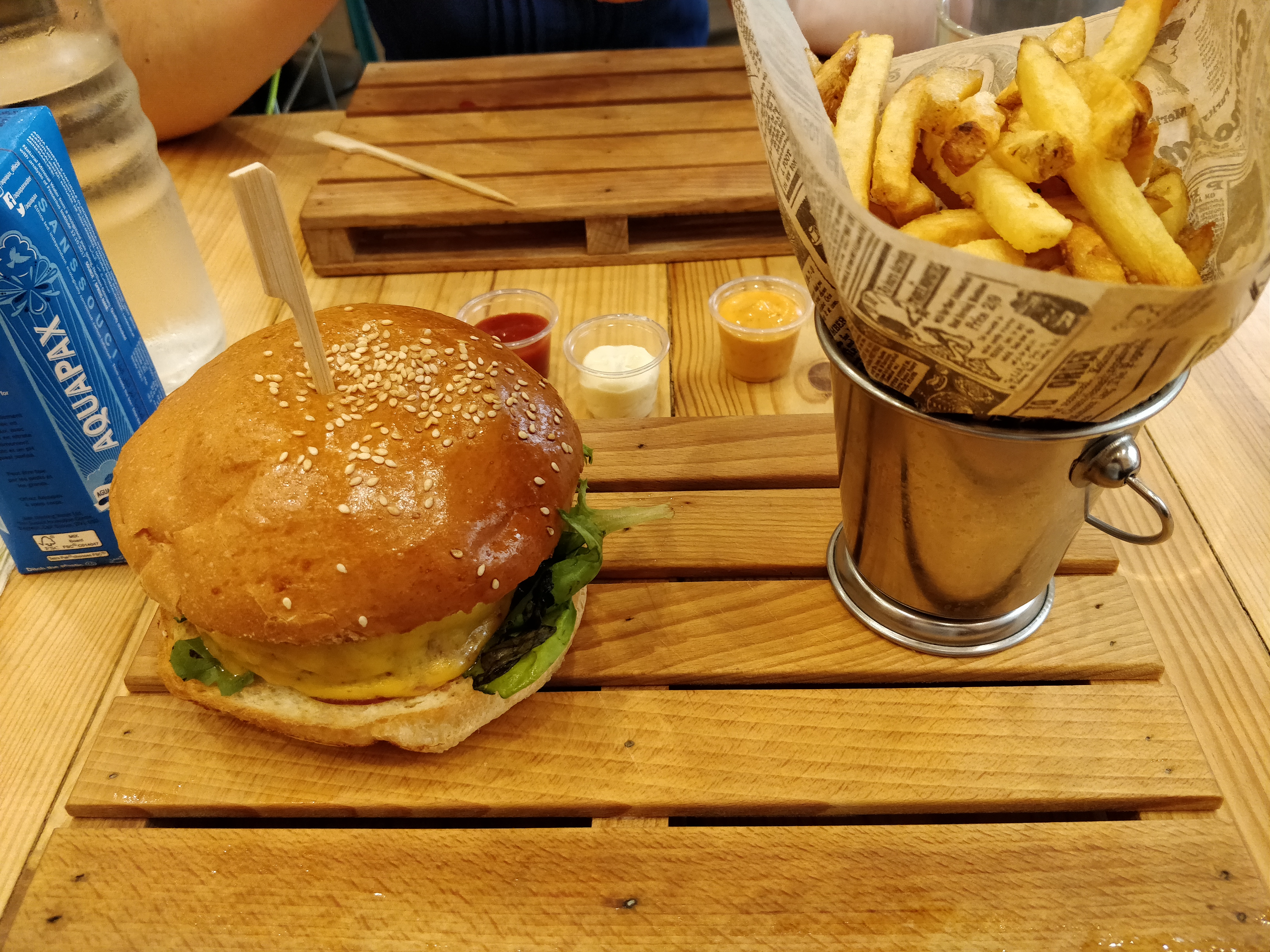 Un moment sympa avec un vrai burger frais de très bon ingrédients cuisiner a la minute de la frite aux sauce rien a redire ces bon un plaisir