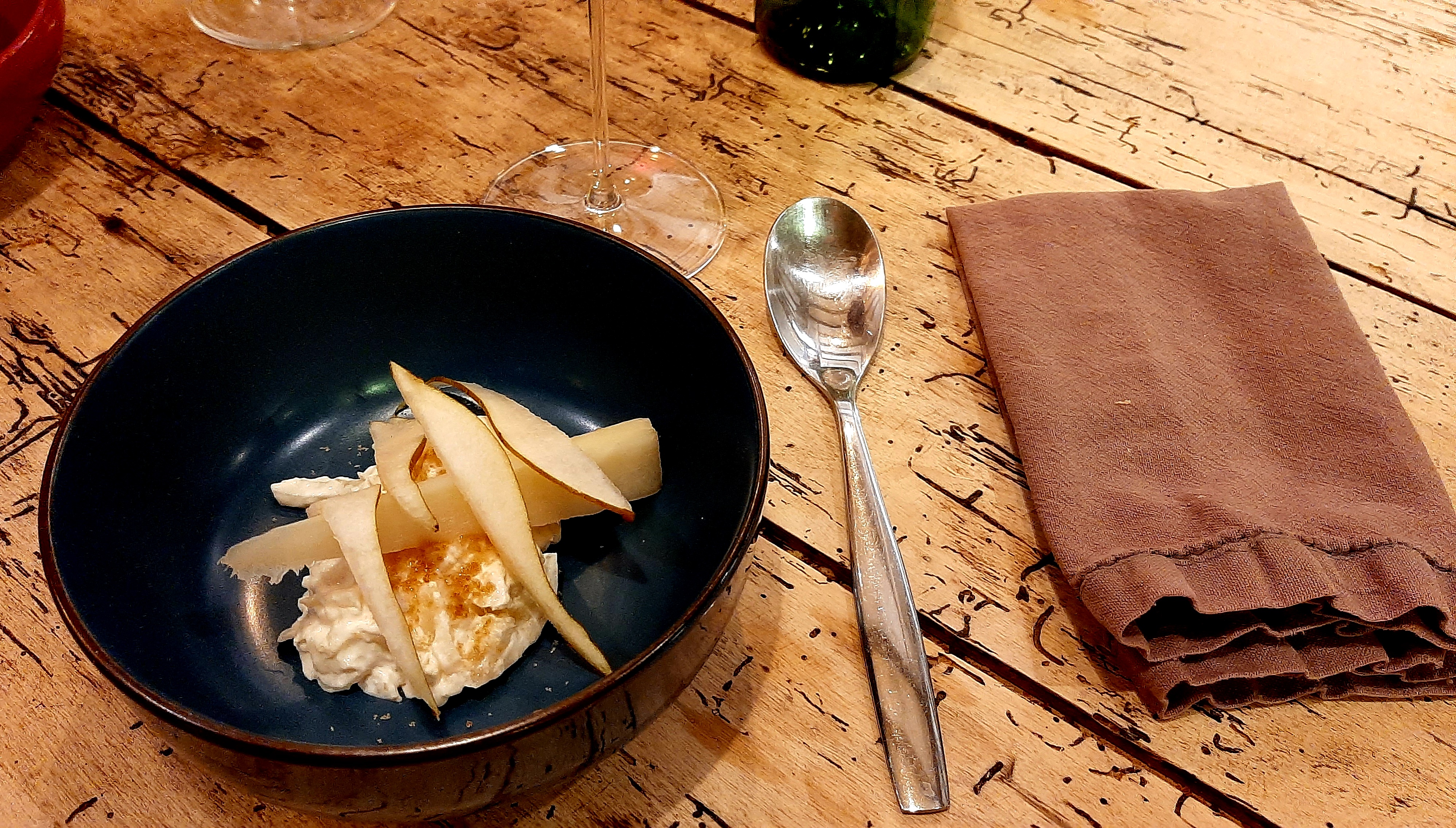 Pas le plus petit reproche à faire. Accueil très sympa, carte soignée et originale, bons vins.. à découvrir ! Peu de places il est prudent de réserver. Cadre magnifique.
