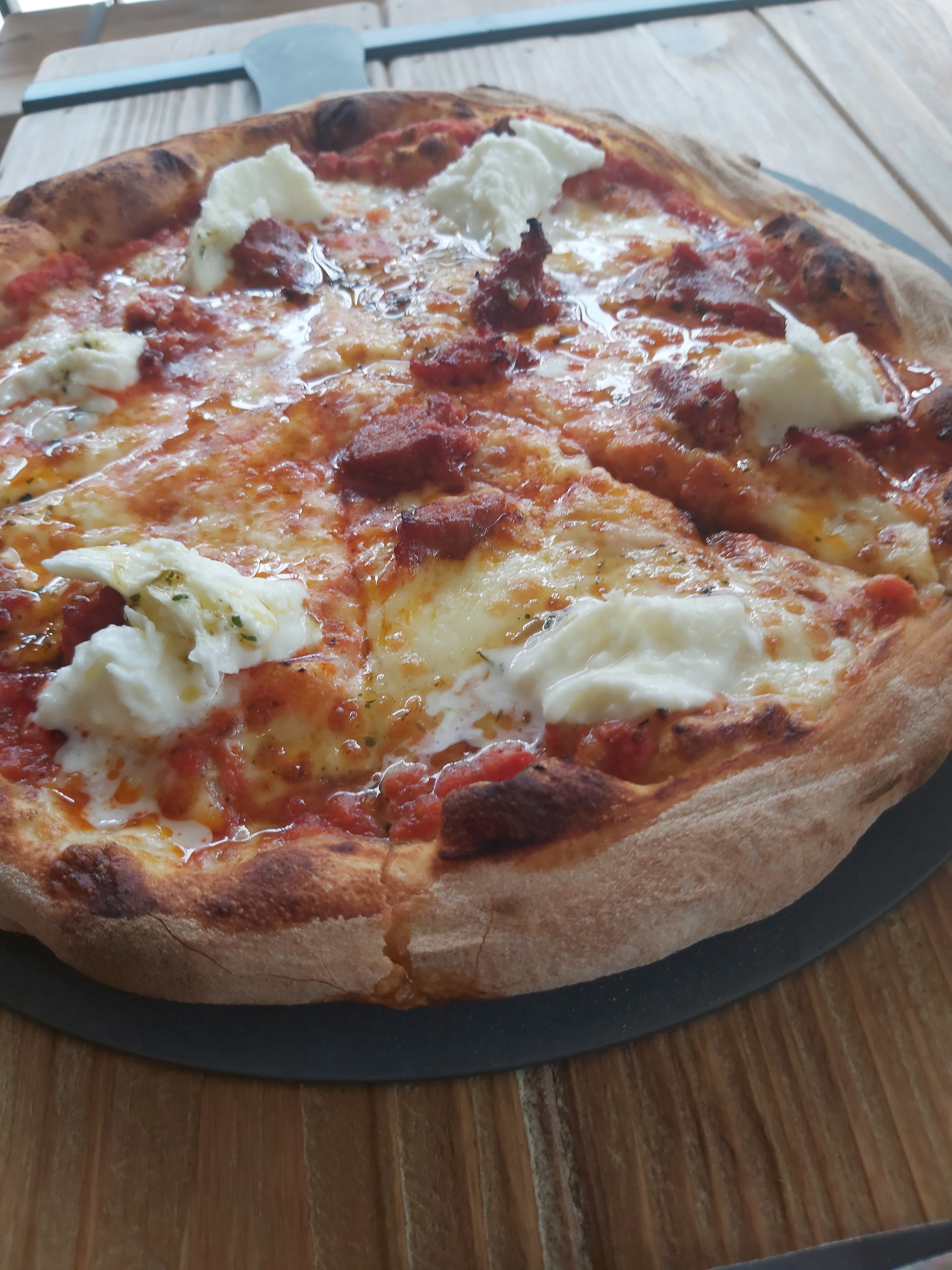 Pizza bien garnie, avec une très bonne salade de saison , planche à partager pour 2 copieuses mais vraiment de très bon produits . Serveuses en salle 2 jeunes filles bien mais quelques petit points négatifs le sourire manque quand même un peut, est manqué de communication entre elle . Mais l ambiance est bonne .
