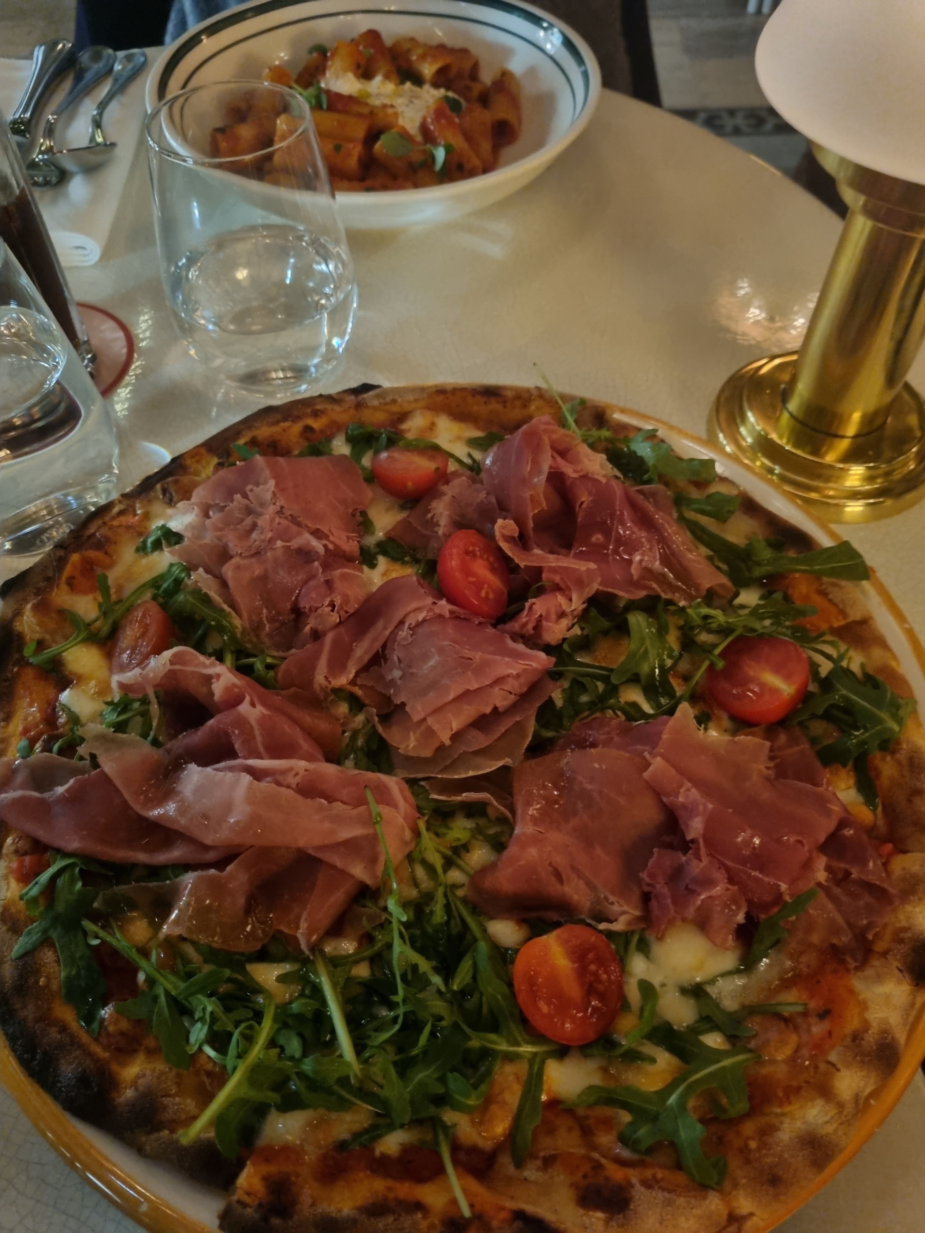 OK pour Instagram, passable pour le reste. L’accueil et le service ne sont pas bons : les réponses sont sèches, on se sent jugé à chacun des choix, comme si on n’était pas assez bien pour eux. Le restaurant était pourtant rempli à peine au quart de sa capacité et on était mercredi midi, rien de foufou … La nourriture est acceptable (la Parma et la 4 fromages), mais les pizzas durcissent rapidement. Si vous y allez, c’est uniquement pour prendre quelques photos, pas besoin d’y rester davantage ni de regarder dans le détail : la moquette de l’escalier est sale et usée, la poussière n’est pas faite sur les abat-jour, des coulures sont visibles sur la balustrade, la lampe de table de l’accueil est complètement ébréchée …