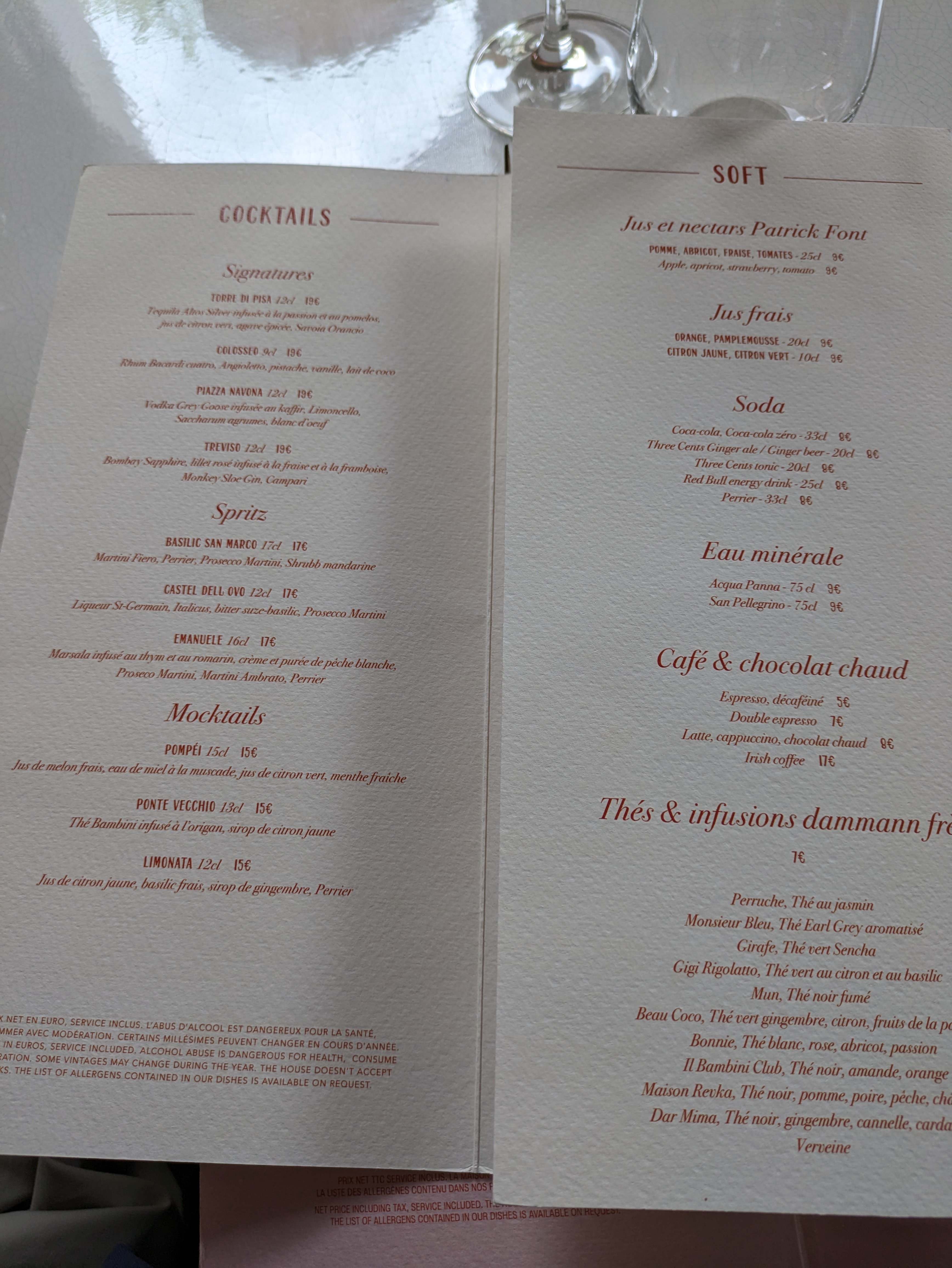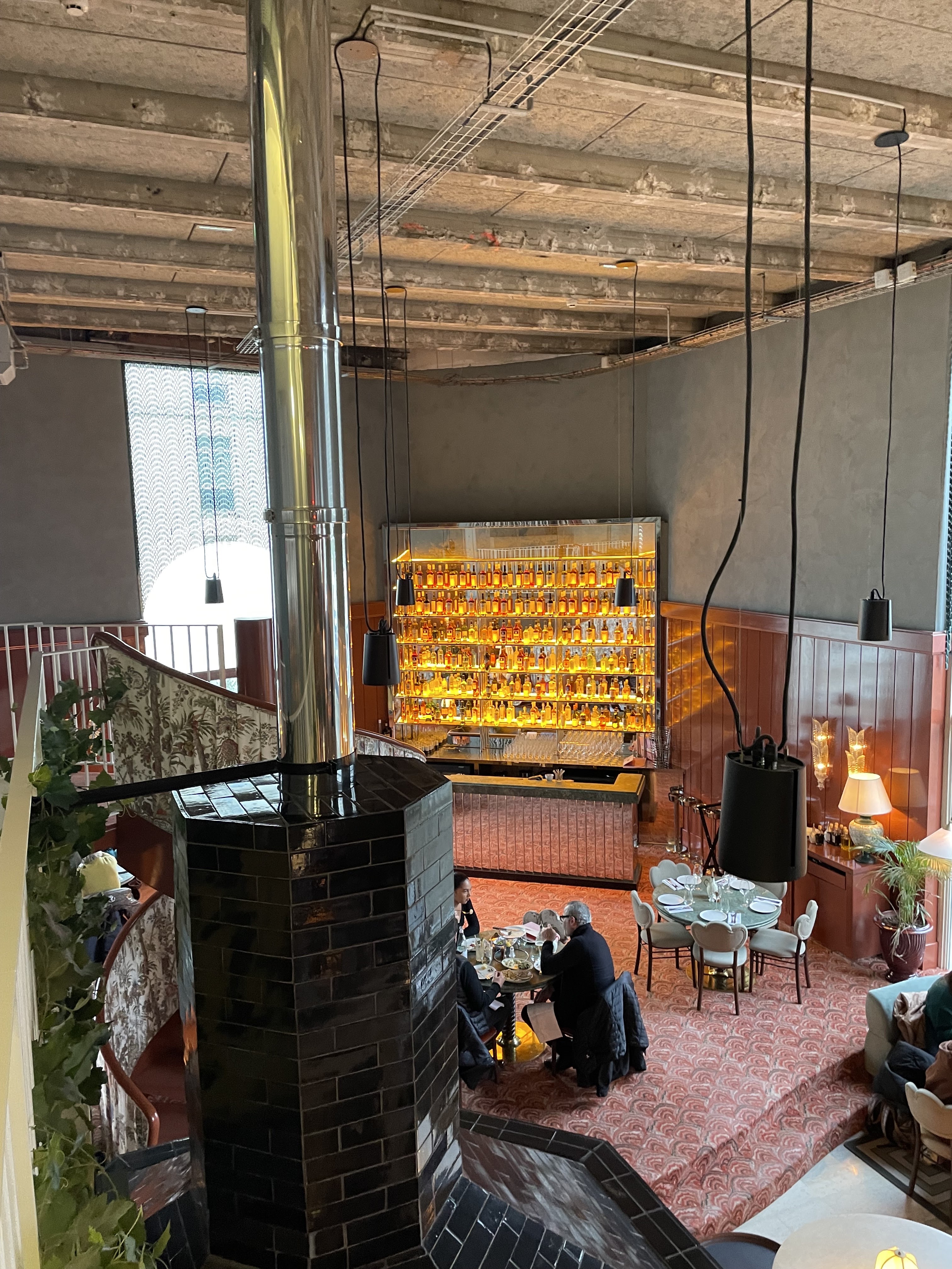 Le cadre est super et le personnel adorable. Nous avons très bien mangé mais le vin une catastrophe a 54euros la bouteille j ai rarement bu un vin aussi peu intéressant et sans goût que ça. Alors certes à 54euros j ai pris une des moins cher mais pour accompagner un plat de pâte j avoue avoir du mal à mettre 150euros dans une bouteille. Par contre les cocktails signatures excellentes. Donc c’est un super lieu mais dommage que le vin ne soit pas à la hauteur