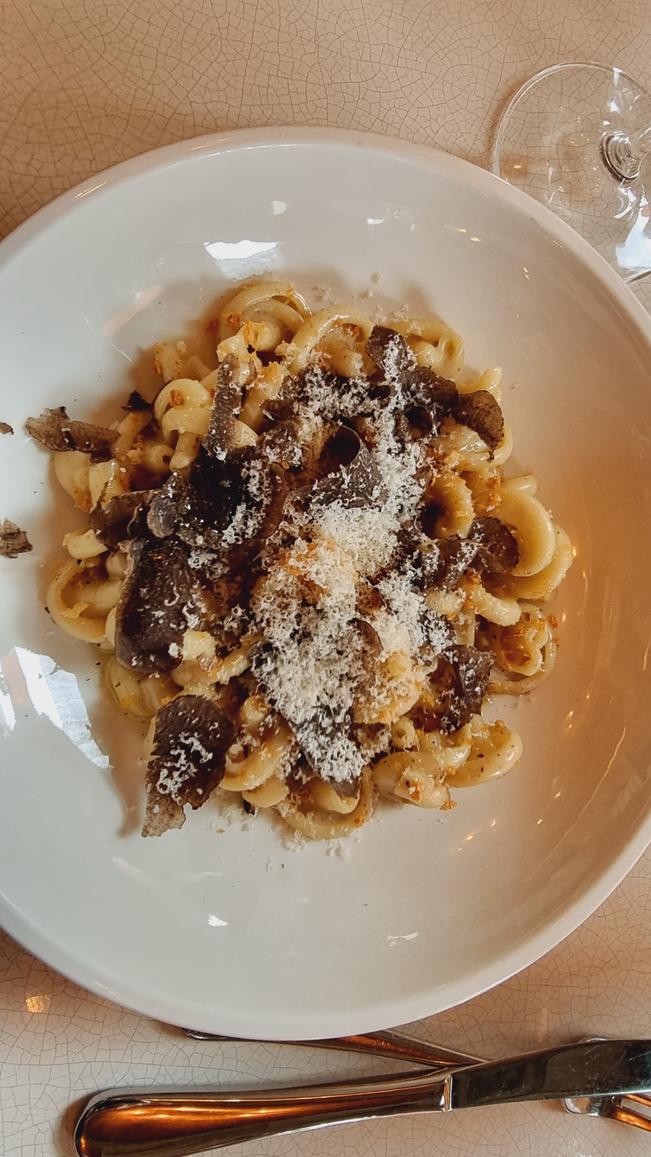 Assez étonnée de la note globale. C’est un très bon restaurant. Le personnel est plus que professionnel, rien à redire. Nous avons pris des pâtes à la truffe qui étaient excellentes ! Beignets en dessert de très bonne qualité. Très bonne recommandation du serveur également pour le vin pétillant. Nous reviendrons. Comptez 55€ par personne minimum pour 2 verres de vin, 2 plats, 1 dessert (à partager).