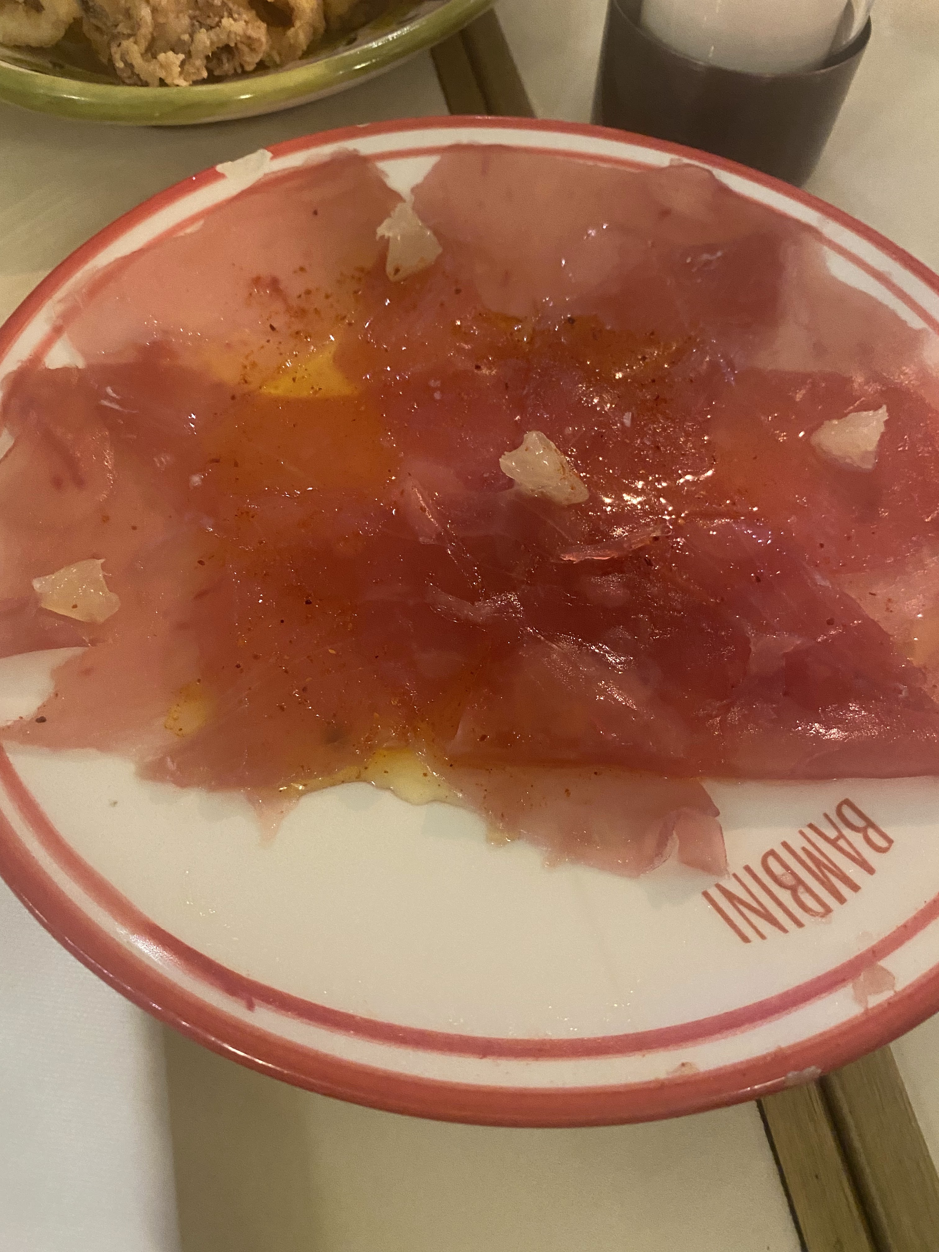 J'étais le 30 mars 2024 au Bambini, un restaurant sympa, bonne cuisine et bon service. Quel dommage de marquer le prix d'un verre de vin comme s'il s'agissait d'une course dans une enchère absurde. Nous avons commandé deux verres de Chablis (15cl), = 32€, qui ne faisaient même pas 15cl chacun. On sait tous qu'une bouteille de 75cl équivaudrait à cinq verres (ce qui n'est pas normal), mais dans ce cas ce serait un verre splendide. Ce qu'ils servaient dans un verre qui nuisait au prix du vin, n'était pas de 15 cl, mais de moins. Il était rabougri. ¿Le serveur a-t-il mal servi puisqu’il l’a apporté déjà servi? Un fait qui ne correspond pas à un restaurant de sa catégorie. Comme je l'ai dit, si vous voulez un verre de vin, apportez un doseur chez Bambini a vant de l'essayer