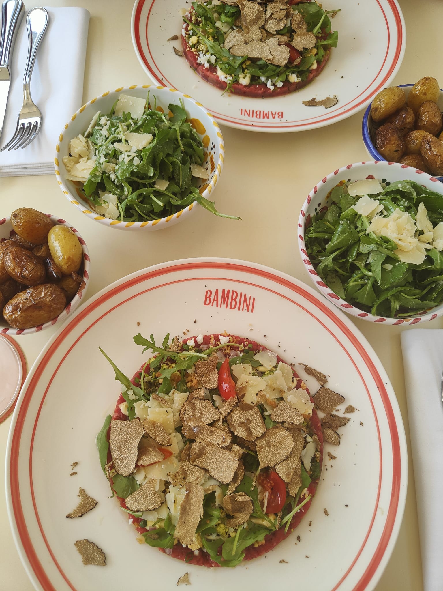 Le seul intérêt qui pourrait justifier de venir chez Bambini : le cadre qui est certes joli mais qu'on paye avec des prix excessivement élevés pour de la nourriture très moyenne. Un resto pour touristes ou influenceurs qui cherchent un spot instagram, dommage car il y a tellement de bonnes adresses italiennes beaucoup plus chaleureuses et authentiques dans Paris!