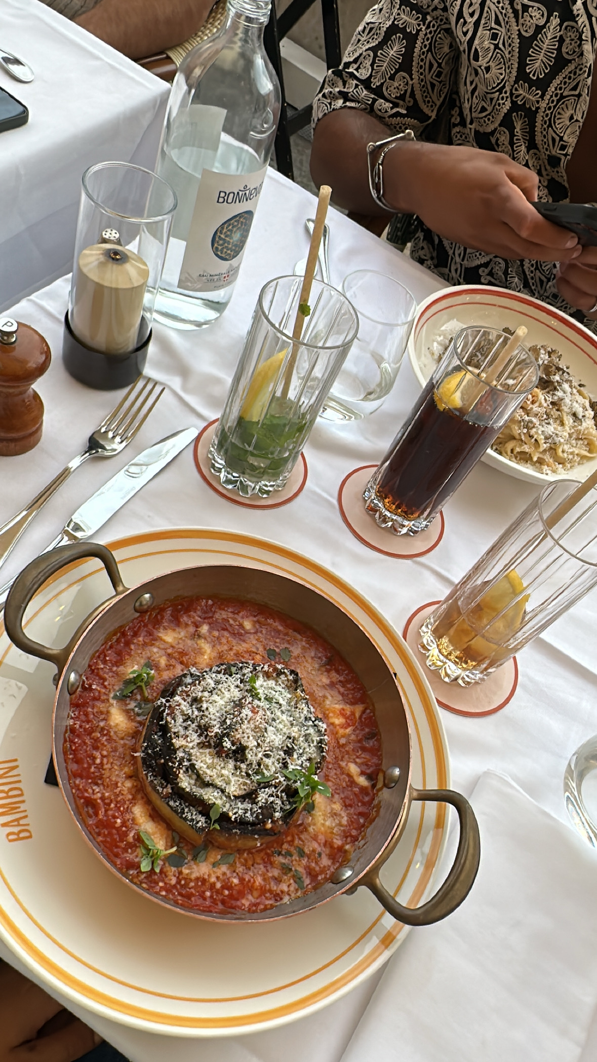 Expérience très mitigée chez Bambini. Les filles à l’accueil sont tops, très gentilles, très agréables. Par ailleurs, mon amie et moi ne mangeons pas beaucoup en quantité, c’est pourquoi nous souhaitions commander plusieurs entrées (4 pour être précise) ainsi que 2 desserts. Le manager nous a alors dit que cela n’était pas possible qu’il fallait à tout pris commander plusieurs plats… afin de pouvoir rester assise au restaurant ???? Veuillez m’excuser de ne pas être un estomac sur patte et de ne pas prendre entrée plat puis dessert. Voilà donc un restaurant où vous n’êtes pas maître de ce que vous mangez. Quelle est votre politique ? Je ne vais pas me forcer à manger pour vous faire plaisir. On nous a alors déplacé à l’avant du restaurant nous disant que l’on pourrait commander la même chose la bas… bien que la vue est à couper le souffle je dois l’admettre nous n’avons pas pu commander ce que nous souhaitions puisque la carte est différente. Je vous déconseille donc ce lieu, bien que le cadre soit très beau, vous trouverez bien meilleur restaurant Italien à paris !!