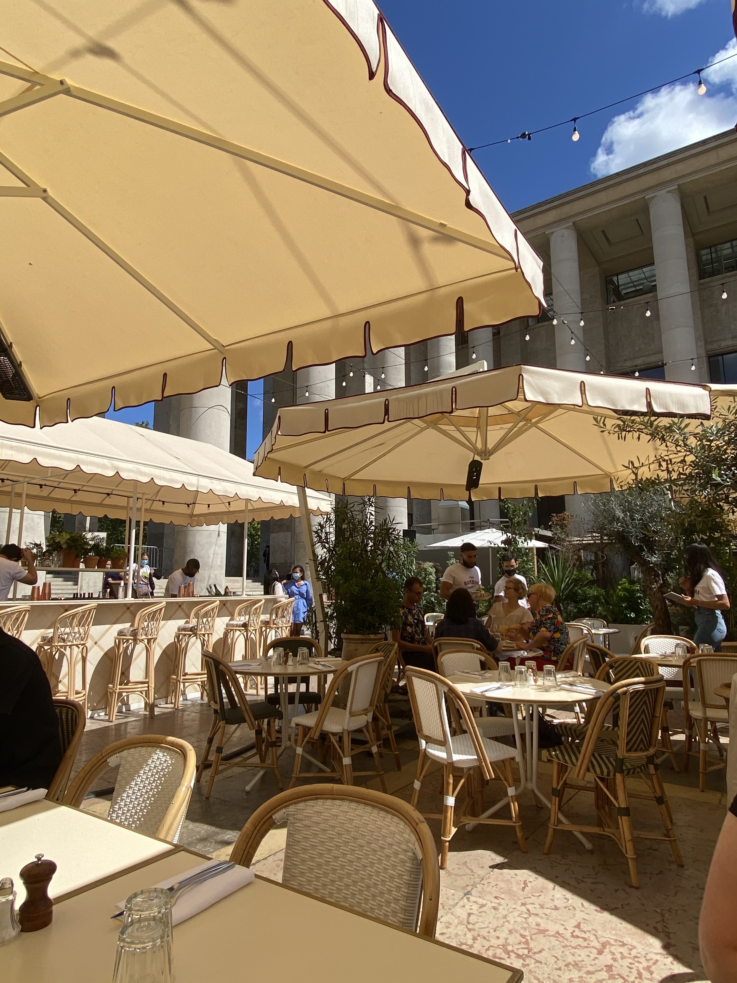 Cadre très agréable en terrasse. Service à la hauteur. Antipasti OK même si les arancini à la truffe manquent totalement de raffinement (essayez peut être d’y mettre moins de riz, moins de fromage et un peu plus de sauce truffée). Pour les plats un grand raté. Pour commencer, tous vos plats manquent énormément de sel. Pates bambini sur cuites avec une sauce beaucoup trop aqueuse et un petit gout de tomates beaucoup trop amères. Green linguine je ne sais pas quoi dire à par que je n’ai jamais rien goûté d’aussi mauvais (enlevez le de votre carte). Pate à pizza toute plate avec des morceaux super épais de courgettes crues, aucun intérêt. Pour avoir tout pompé à Big Mamma, vous leur avez au moins laissé la bonne cuisine hahaha
