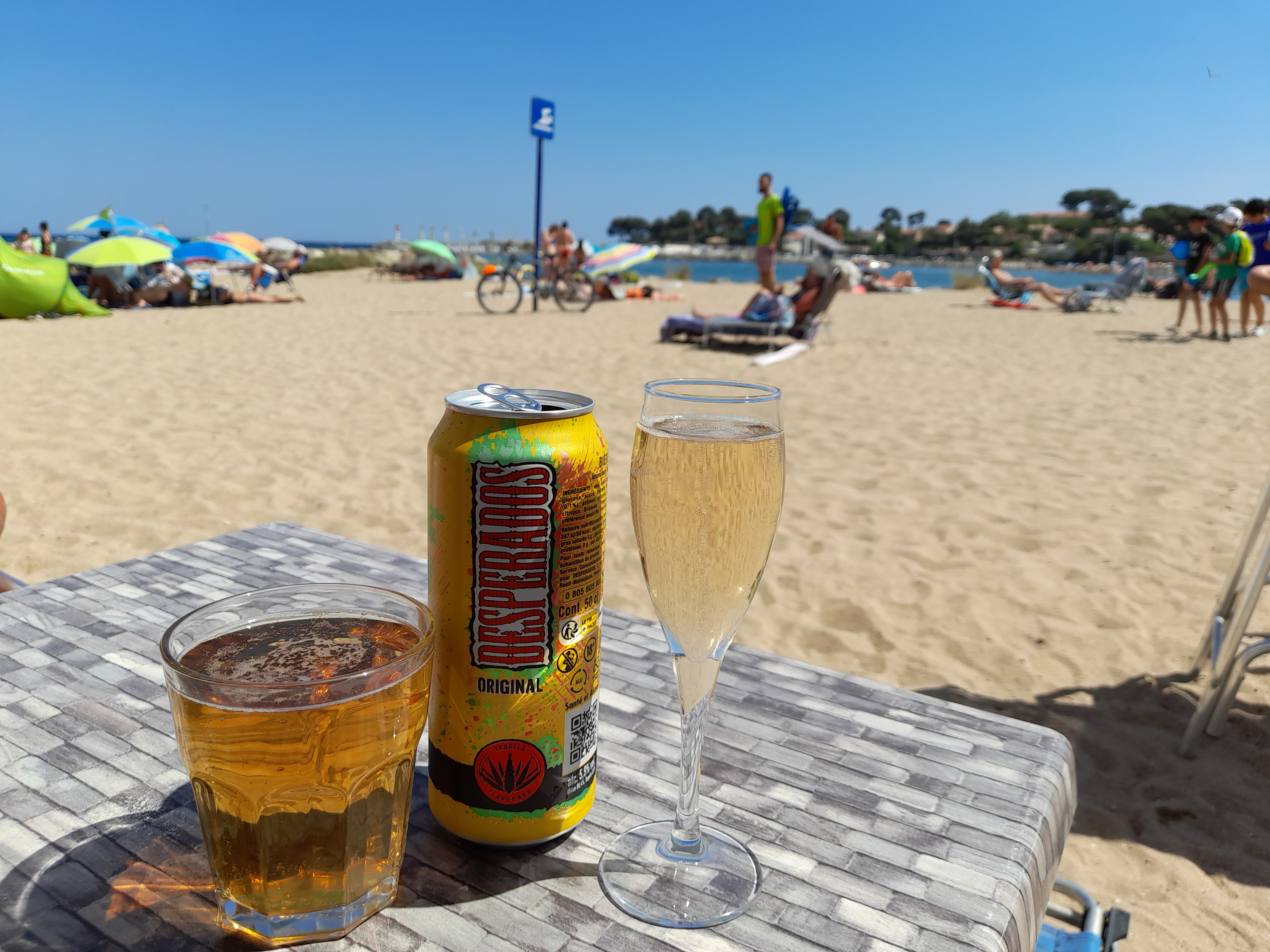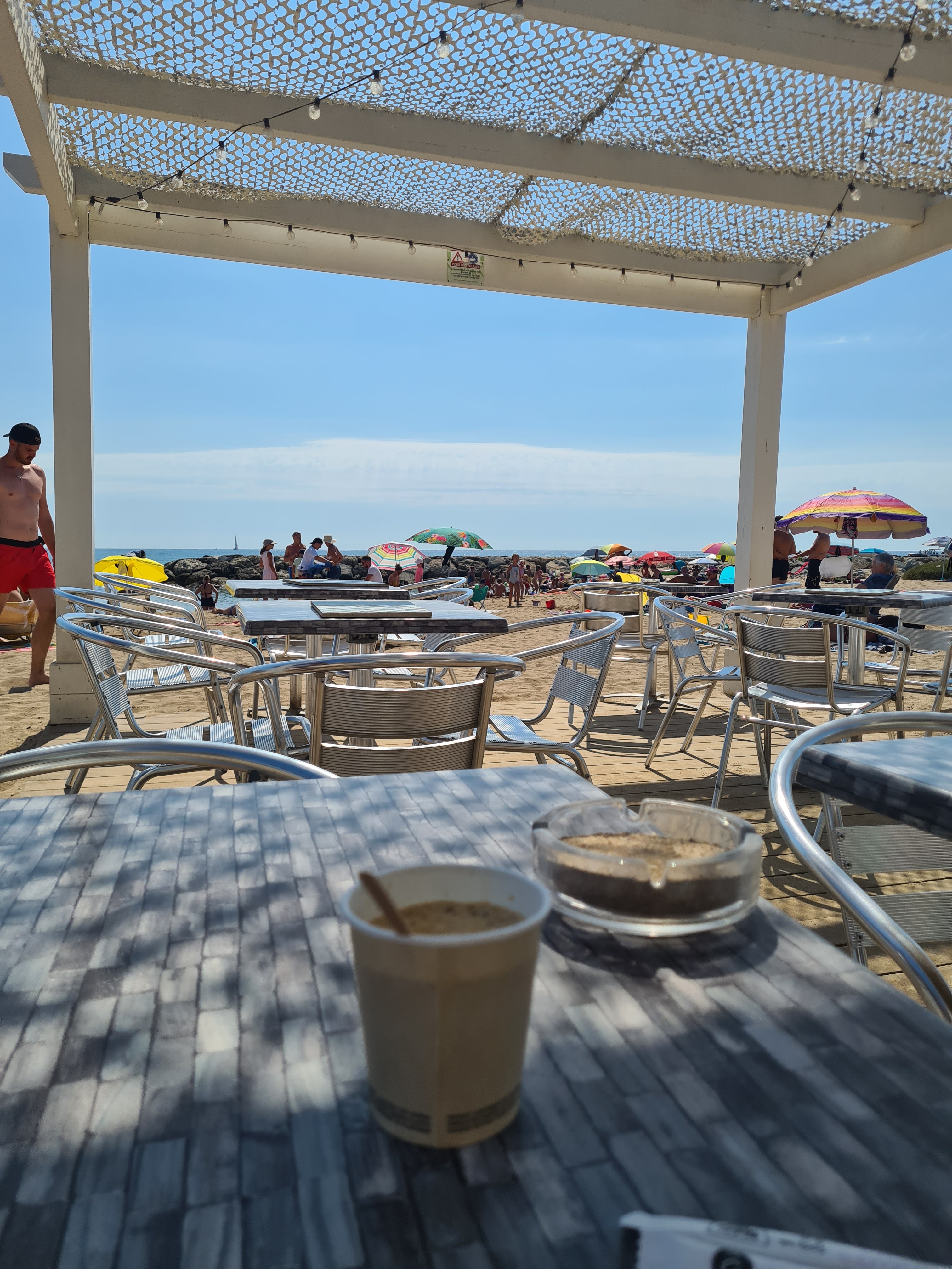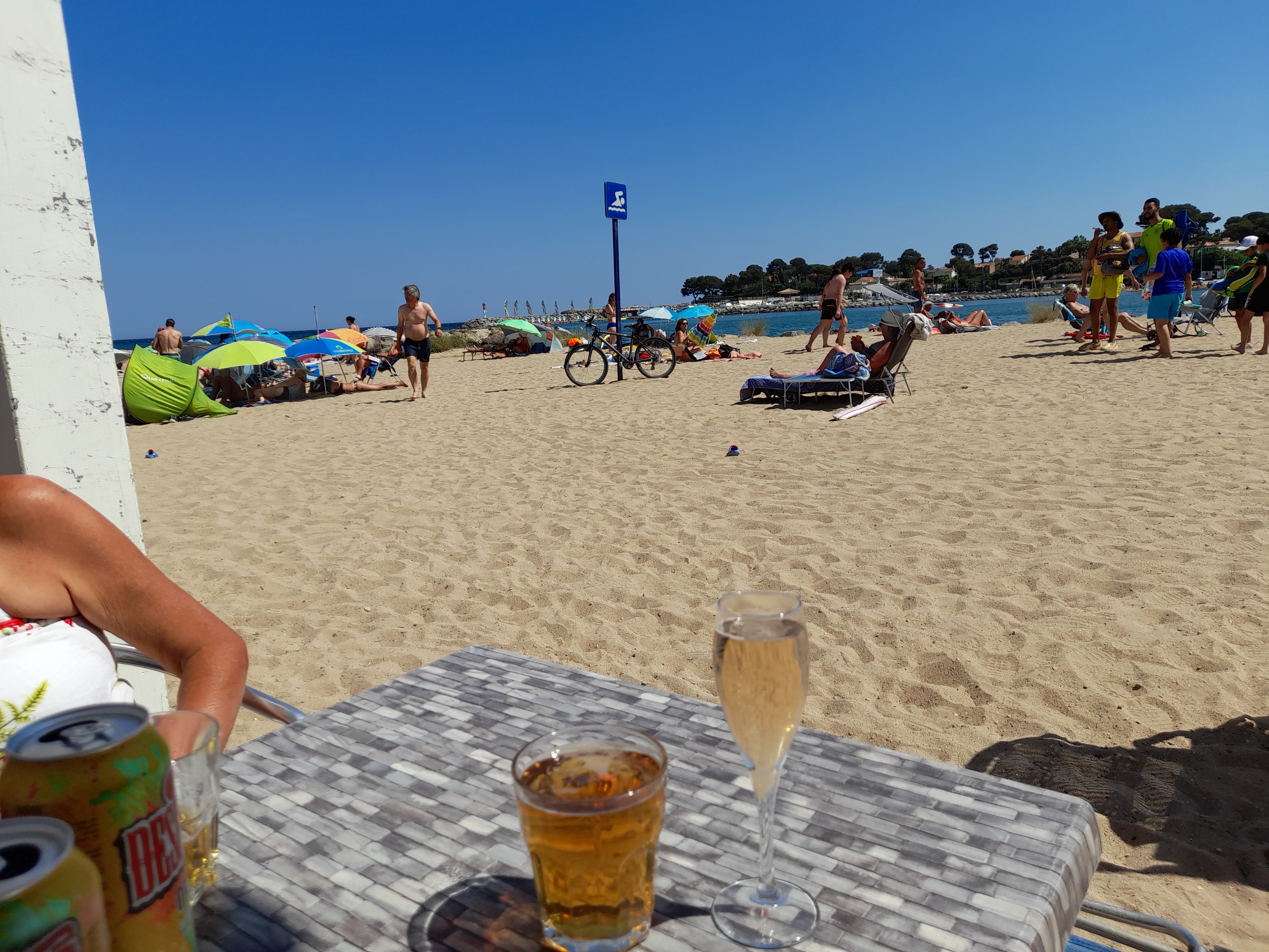 Une pause café sympa après notre ballade les pieds dans l'eau. Un barman sympa avec le sourire Un petit verre de blanc bien frais. C'est le top Merci