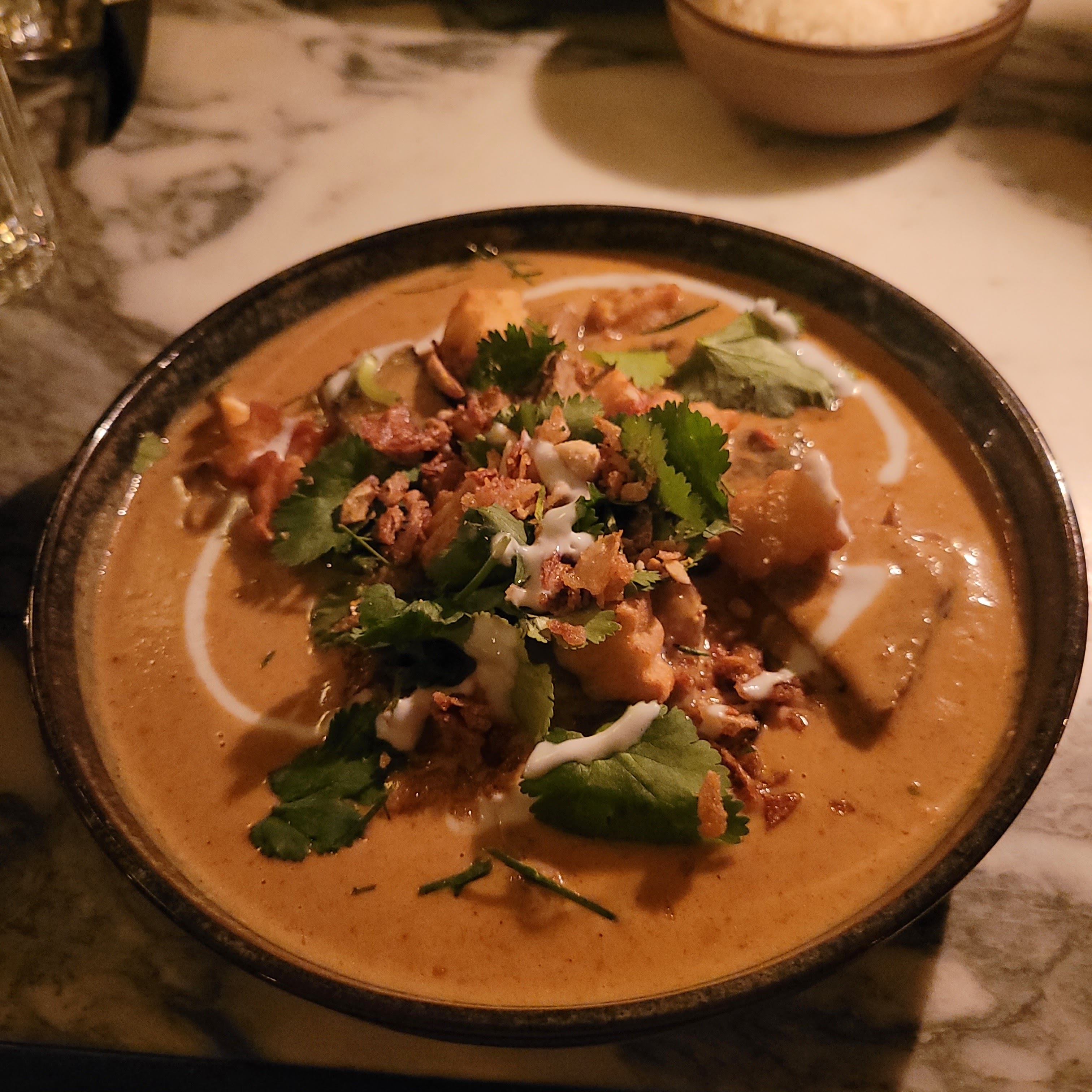 Super restaurant à l'ambiance incroyable. Cependant, les mets ne sont pas incroyable ; Il y a un effort qi est fait sur l'apparence, mais le gout ne suit pas toujours. En termes de spécialité, j'ai déjà gouté mieux et beaucoup beaucoup moins cher. Toutefois, les produits utilisés semblent être de qualité. Je n'ai pas apprécié le boeuf dans le curry massaman, il était trop dur et pas du tout fondant tel qu'on l'attends d'un ragoût.