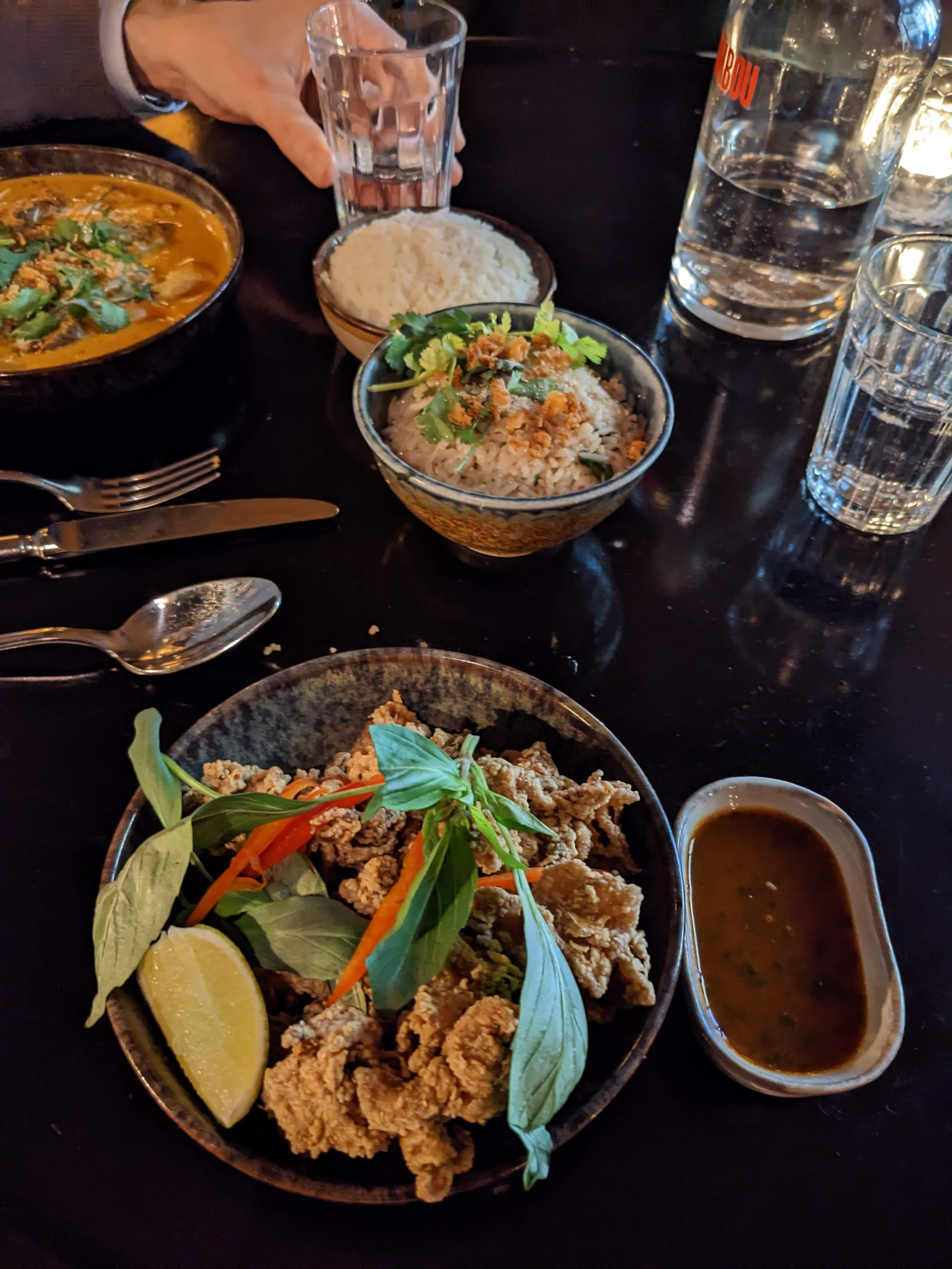 Restaurant au cadre sympa. Cependant, service très très long et en terme de nourriture, si vous n’aimez pas trop pimenter, passer votre chemin. 3/4 des plats sont pimenter. Certe , c’est de la cuisine thaï, mais même en Thaïlande nous avons le choix sur le piment. En terme de prix, un peu cher pour ce que c’est, car portions moindre. C’est le problème de ce genre de resto devenue à la mode et « instagrammable » nous payons le décors !