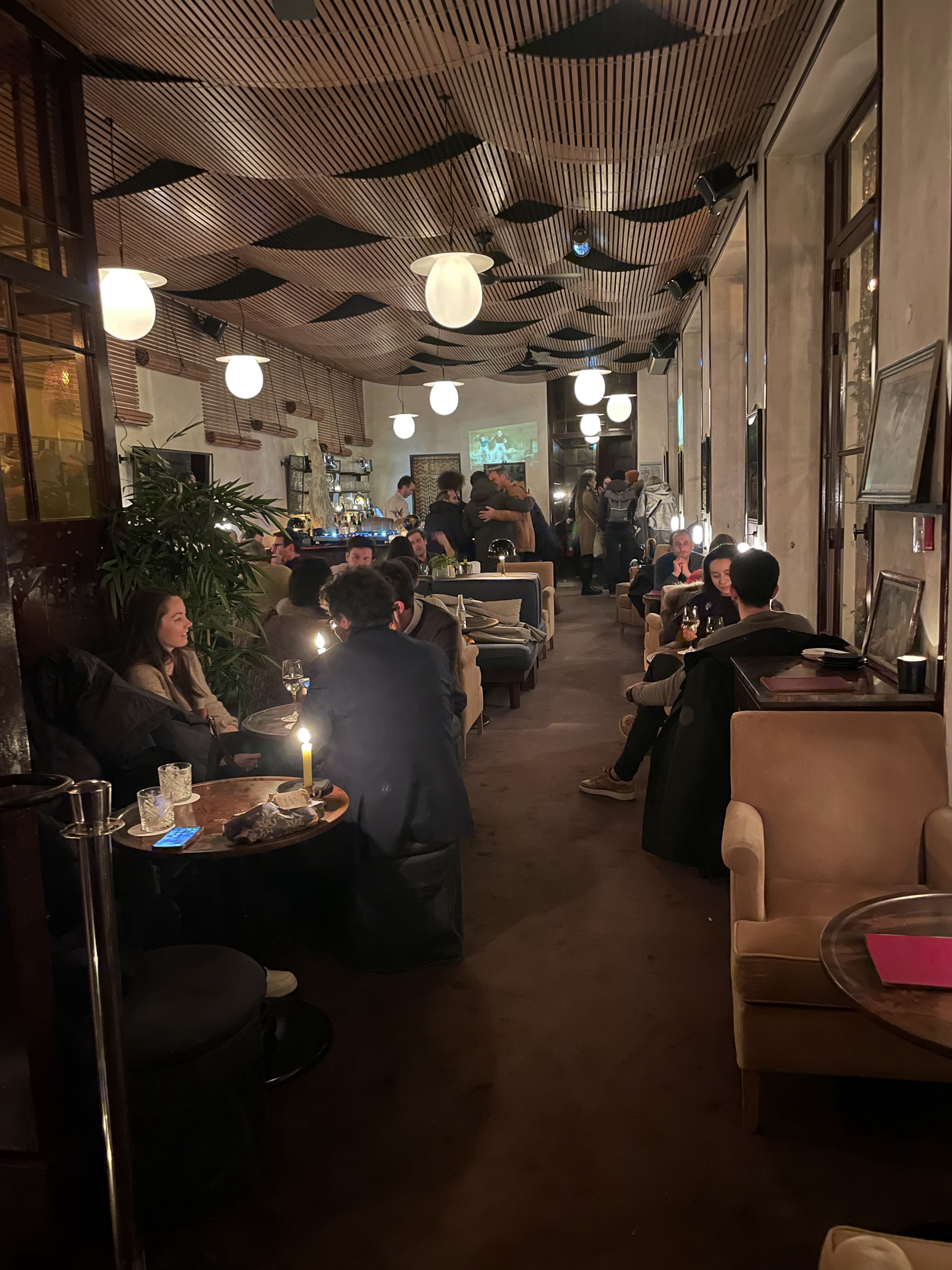 This restaurant has a beautiful decoration. Unfortunately the cuisine is banal. The quality/price ratio is rather average. The plates are beautiful but the taste is not special. On the other hand, the hidden bar is really incredible. Last night, there was a duet with a young man with clear eyes and a young woman with a beautiful afro. I have rarely seen such nice and efficient bartenders in full rush. The staff is really top notch. I highly recommend the bar, but don't recommend the restaurant. VF Une expérience à double teinte. Niveau restaurant, c’est très beau. En revanche la cuisine est banale . Le rapport qualité / prix est assez moyen. Les assiettes sont belles mais le goût n’a rien de particulier. En revanche, le bar caché est vraiment incroyable. Hier soir, il y avait un duo avec un jeune homme aux yeux claires et une jeune femme avec un magnifique afro. J’ai rarement vu des barmans aussi sympa et performants en plein rush. Le staff est vraiment au top niveau. Je recommande vivement le bar, mais déconseille le restau.