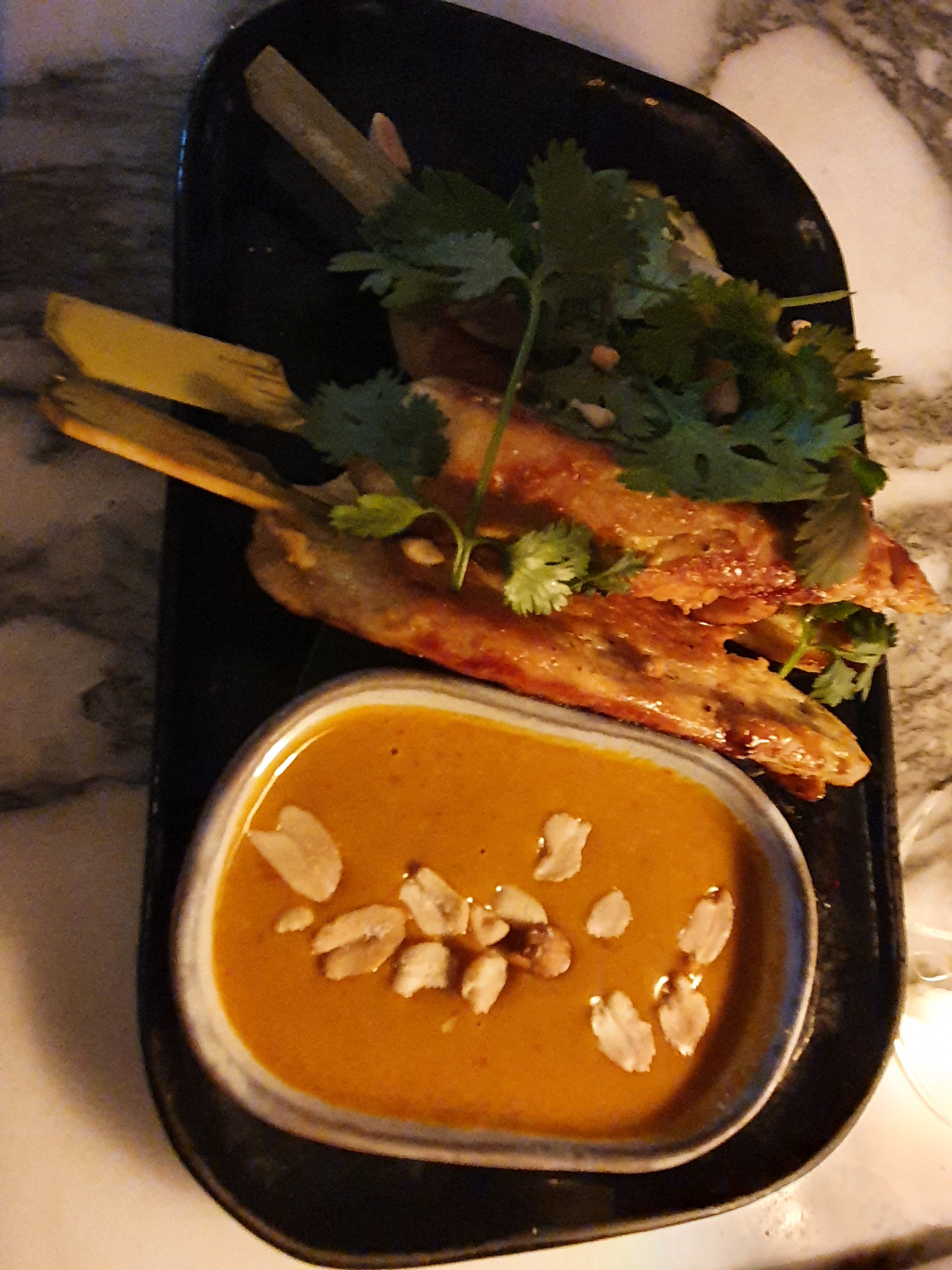 Le gros point fort de ce restaurant est la magnifique terrasse dans une cour intérieure, à l'abri du bruit (la terrasse du restaurant est non fumeur, seule celle du bar l'est). Nous avons goûté le satay de poulet, le pad thaï de crevettes et la pavlova. Tout était très bon mais les prix sont assez élevés (nous avons notamment trouvé que 15€ pour 3 petites brochettes de poulet en entrée c'est excessif).