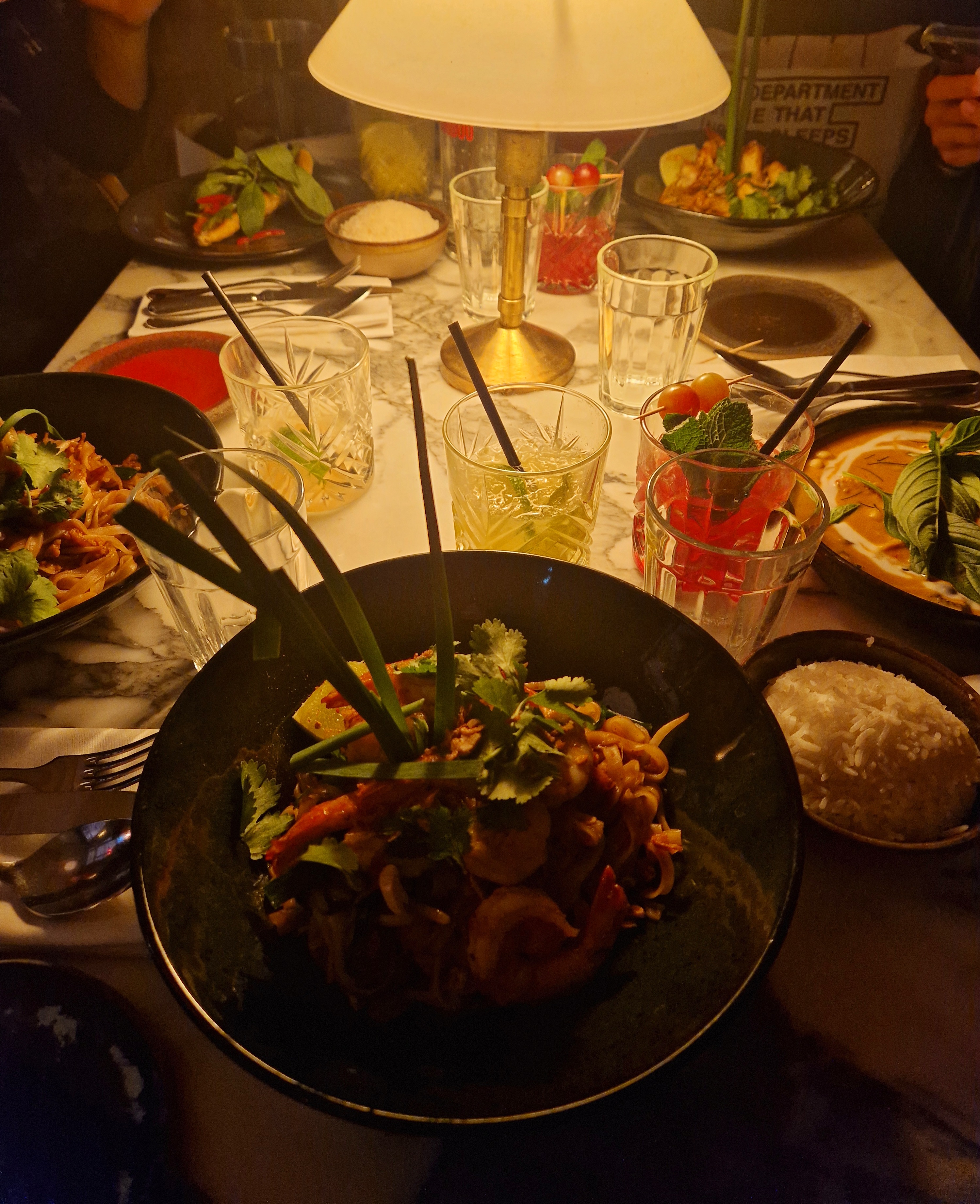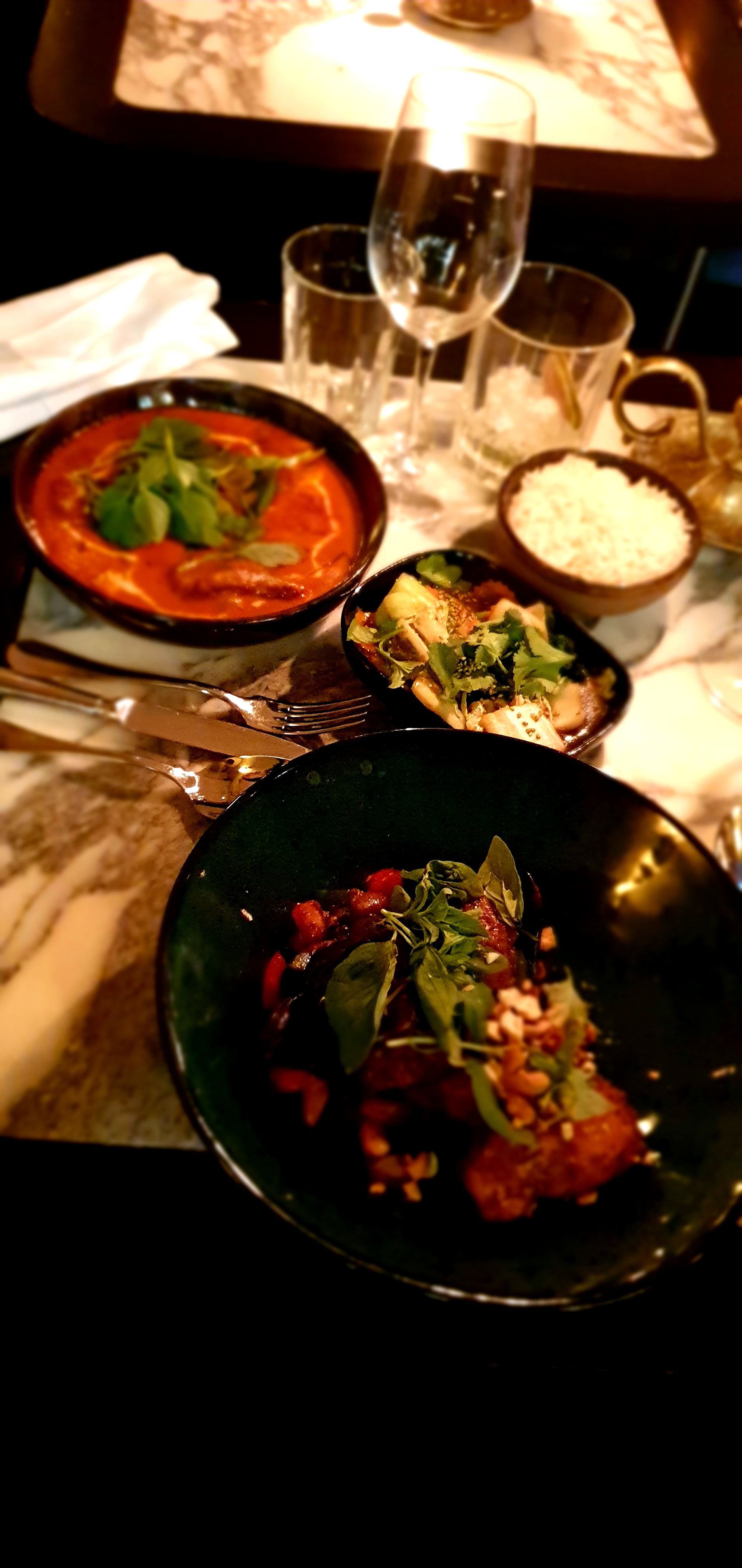 Superbe endroit, nous avons dîné à 22h dans un petit salon style cabinet de curiosités asiatiques. Très élégant. Cuisine raffinée et pleine de goût (Ha Kao crevettes, Pad Thaï, salade de boeuf, St Jacques snackées et desserts à base de citron, basilic, coco etc). Service impeccable. A part, le volume sonore, un peu bruyant mais le samedi soir, je recommande !