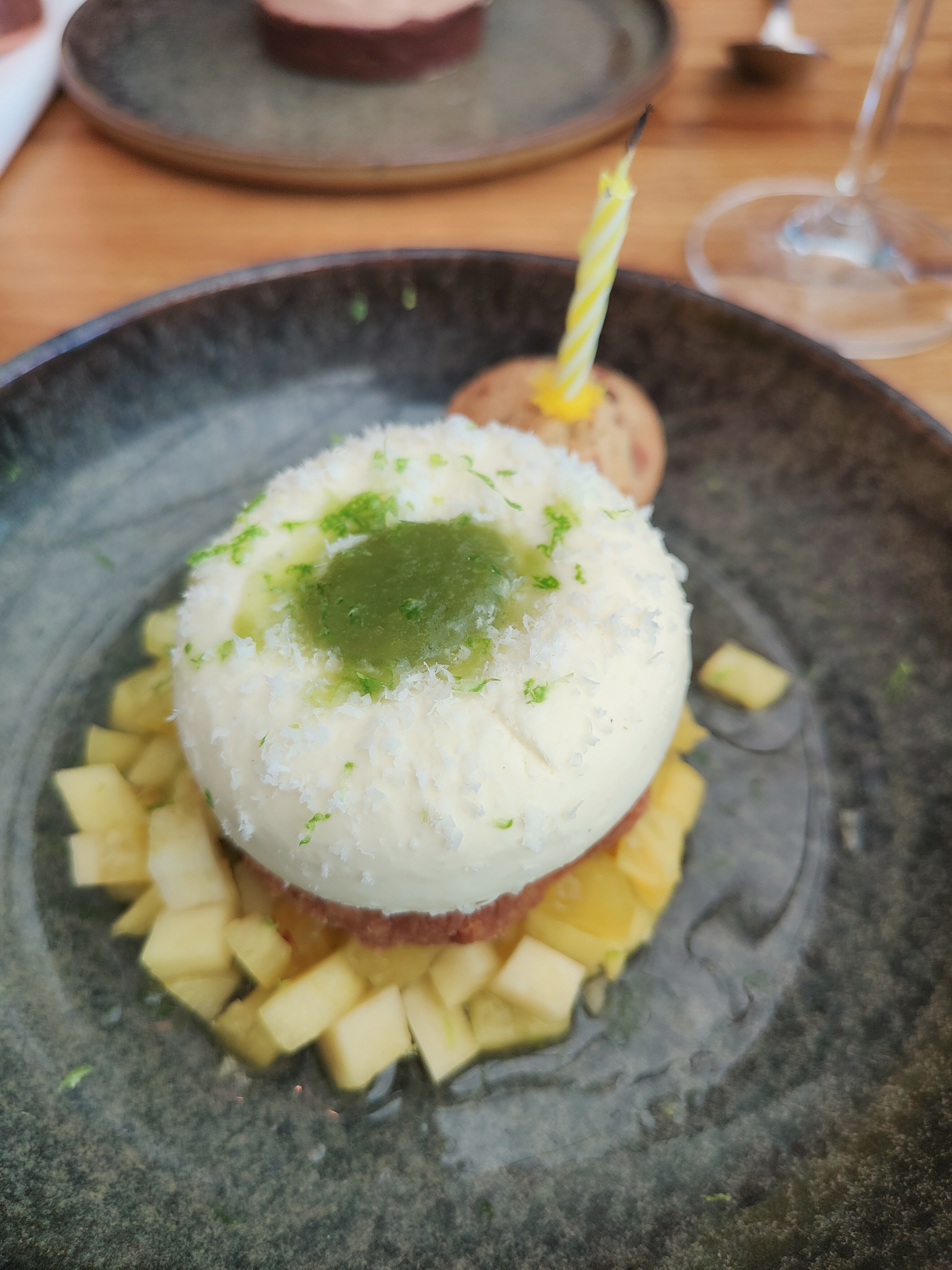 Très bon ! Le chef Valentin si c est bien son prénom nous fait voyager 🧳 Le riz au coco simple mais efficace en accompagnement Et pour finir avec cette chaleur un sorbet mangue comme je n en avais gouté que lors de mon voyage en Inde avec toutes ces saveurs. Niveau prix ca reste cher puisqu’il faut compter en moyenne 25 euros sans accompagnement le plat et entre 15 et 20 euros une entrée Ms vu la qualité des produits, les saveurs et le cadre n hésitez pas longtemps...les réservations pour y manger sont longues