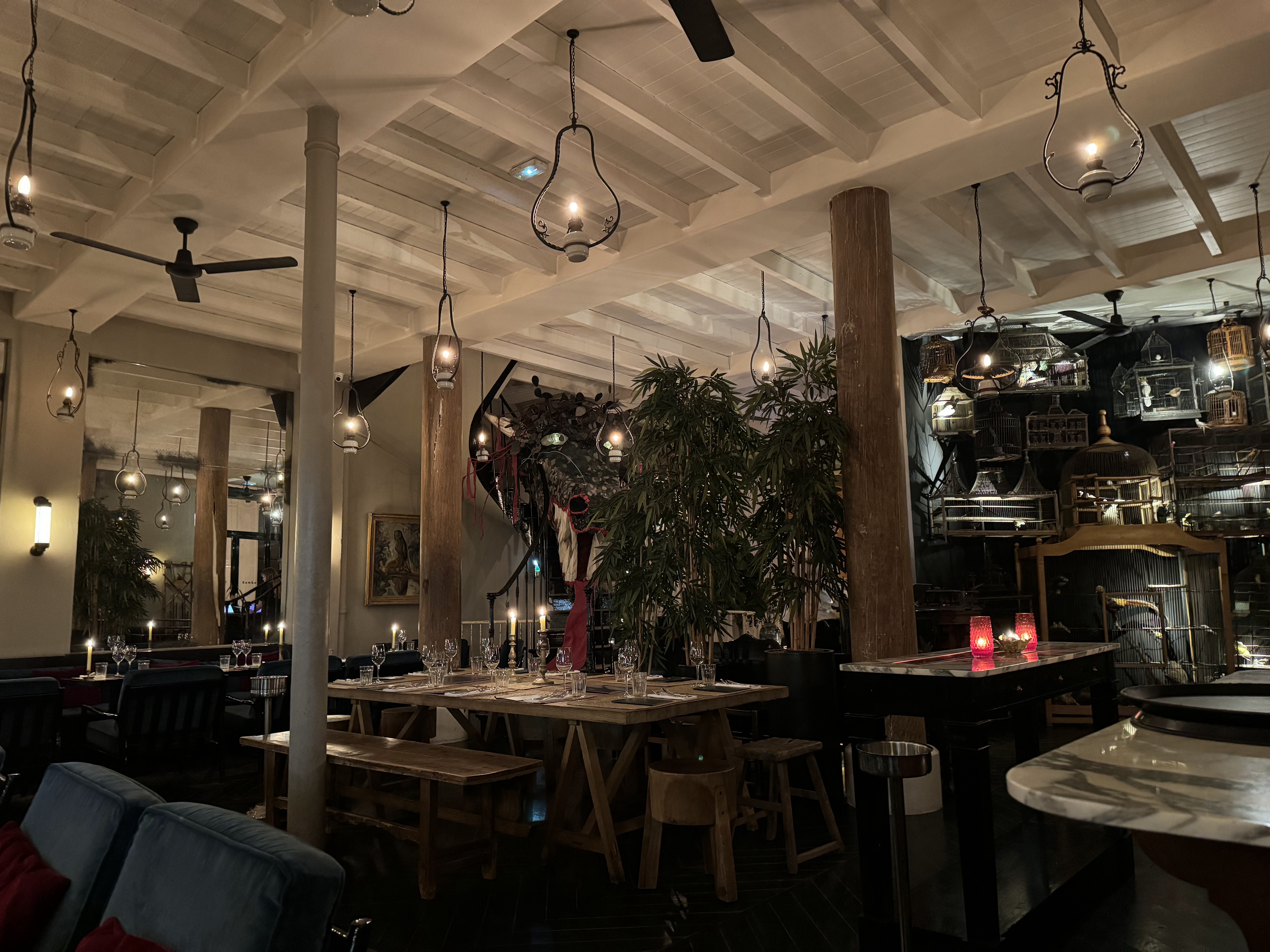 Restaurant à la superbe décoration immersive , spacieux, les bibelots, les cages, toit en fibre végétale etc... Pour la cuisine Thaïlandaise : savoureuse mais pas assez chaude puisque les plats étaient arrivés alors que les entrées n'étaient pas terminées...du coup revenus mais tiède ! Service minimum ce soir-là. Mention spéciale et 1 étoile de plus pour les desserts : gourmands, savoureux, originaux ...bref délicieux ! Rapport quantité qualité-prix qui monte vite avec les boissons.