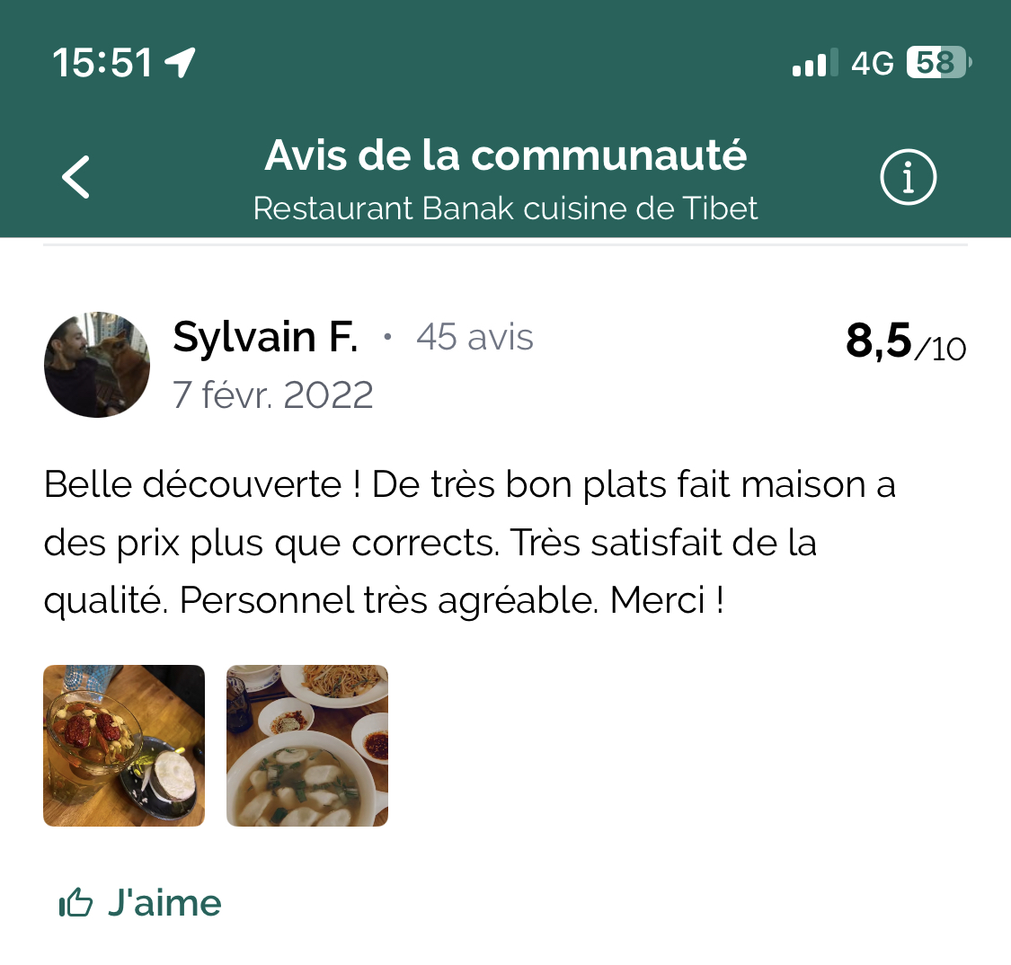 Un régal un délice on est au Tibet et on adore. Accueil deco et service impeccable. Tout est fait maison et c’est très très bon, j’y retourne avec plaisir et les yeux fermés. Les plats sont copieux on du goût et le rapport qualité prix et parfait. Possibilité de repartir avec un doggy bag si vous ne finissez pas tout. J’adore ce restaurant. 😍