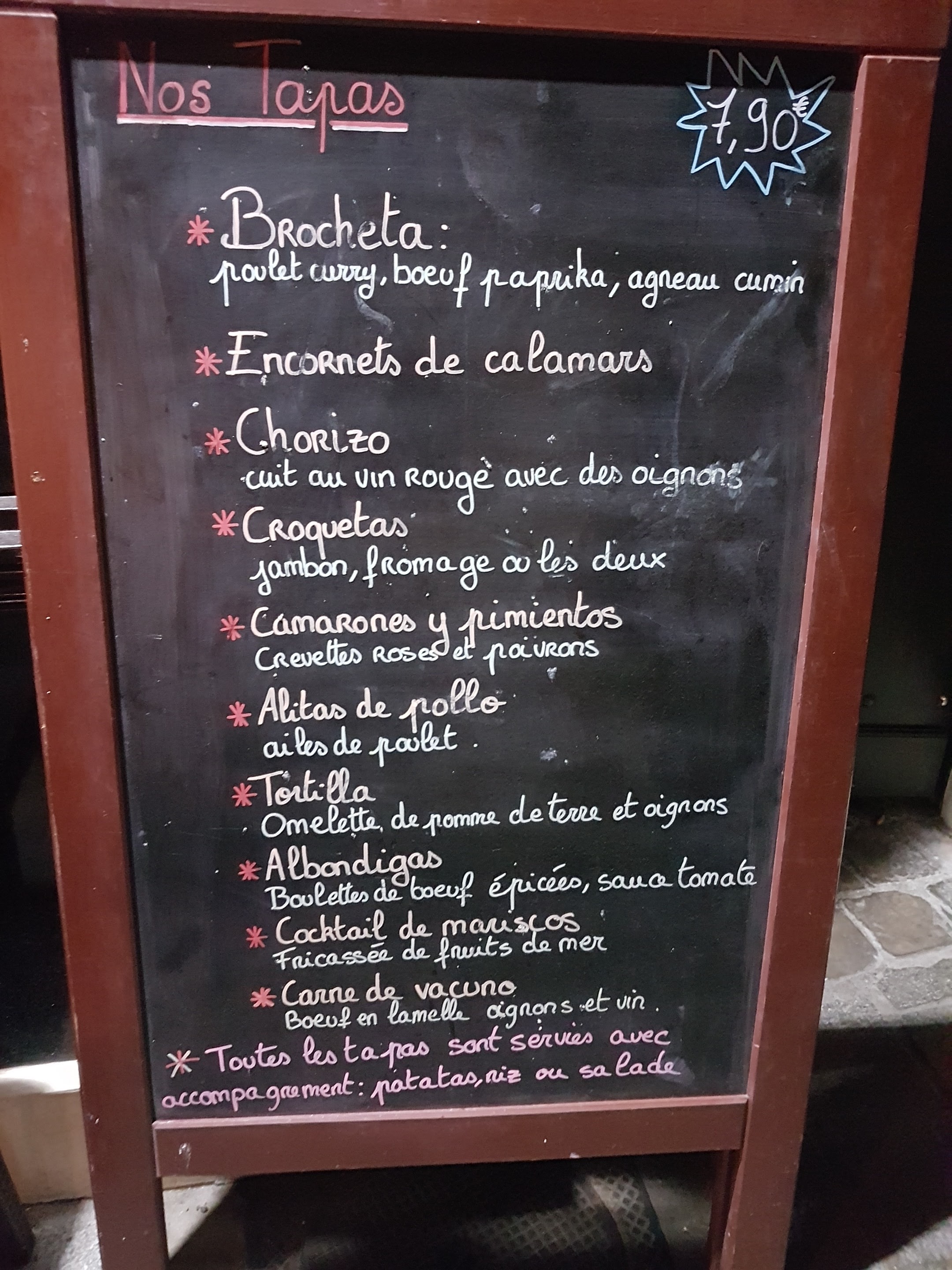 Si vous voulez déguster une bonne sangria, tout en dégustant des tapas, c'est l'endroit idéal. Que ce soit en extérieur (la rue est piétonne le soir) ou en intérieur (déco type Provence), on y trouve un accueil sympathique. Les plats sont assez variés et il est possible de prendre des petites portions sur certains plats pour goûter de tout. Ils font de la paela certains soirs mais ils faut réserver à l'avance. Il y a de temps en temps de concerts également.