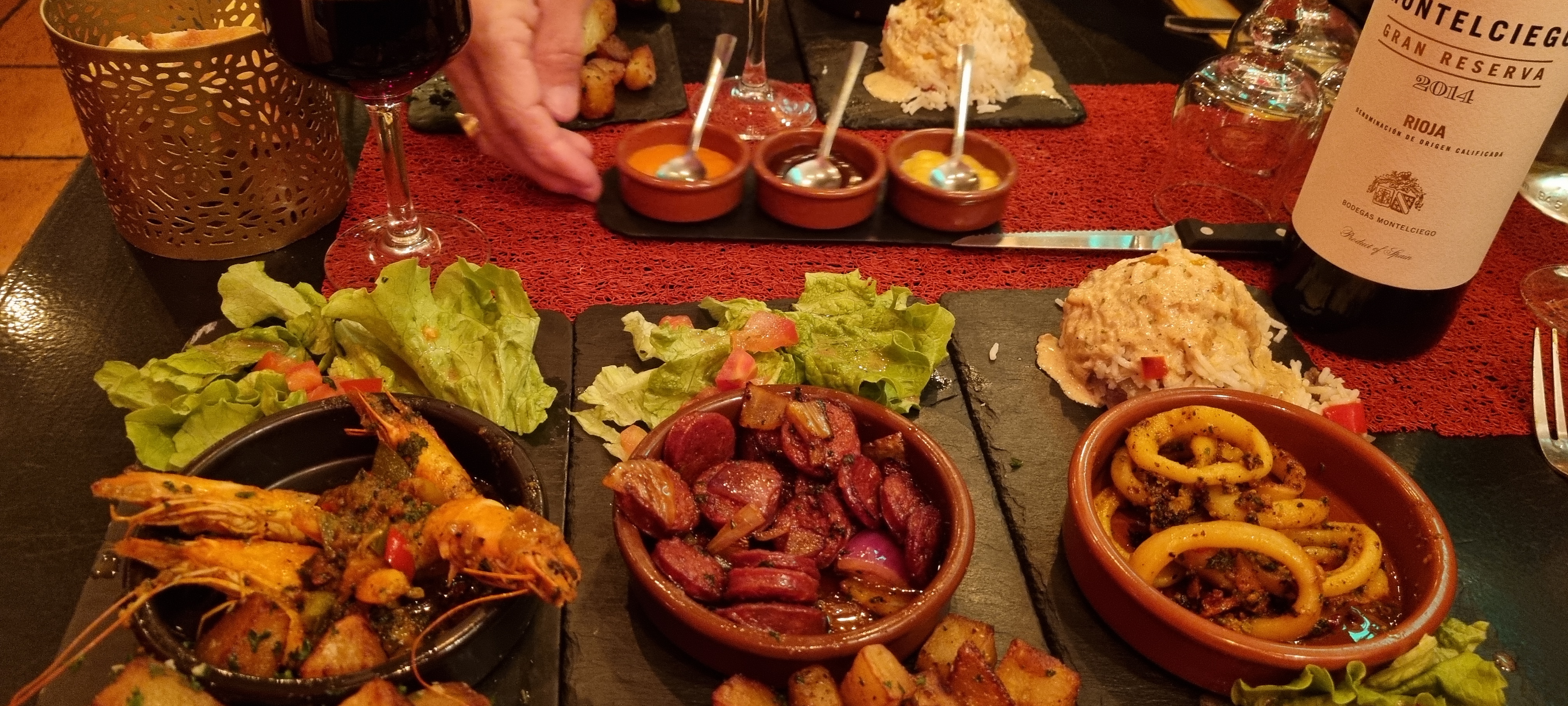 Les tapas sont très bons Mais les plats principaux comme la paella nous ont un peu déçus Le cadre est chaleureux mais la grande table Ronde nest pas propice à la conversation entre convives. Le service est très bien.