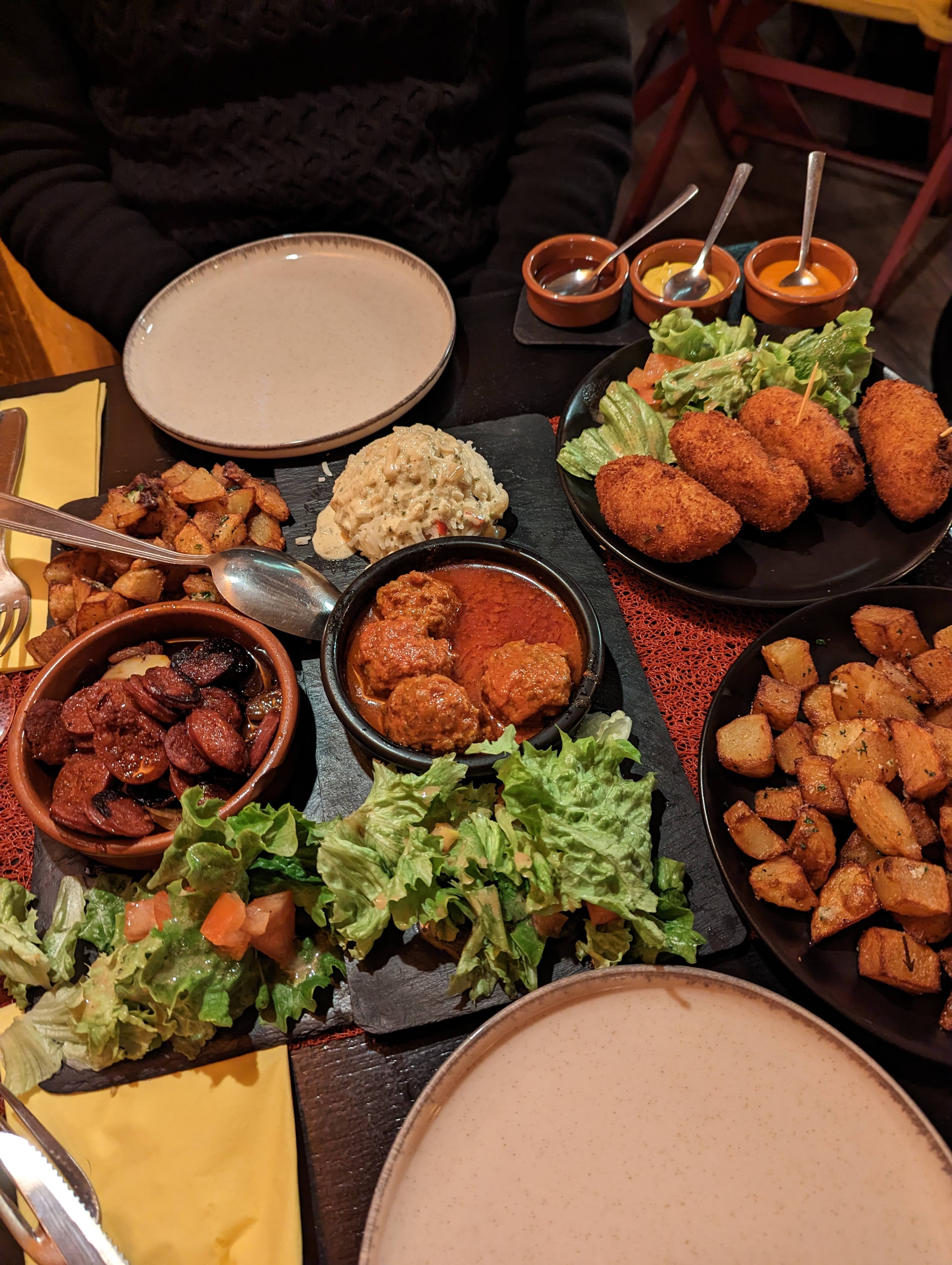 Tapas joliment servies et c'est bon. Patatas bravas bien meilleures que des frites. Les sauces pour les brochettes sont bien épicées, celle au curry est plus douce. Par contre service un peu long, y aller si on a le temps. Mais cela se comprend car bcp de tables et effectif limité.
