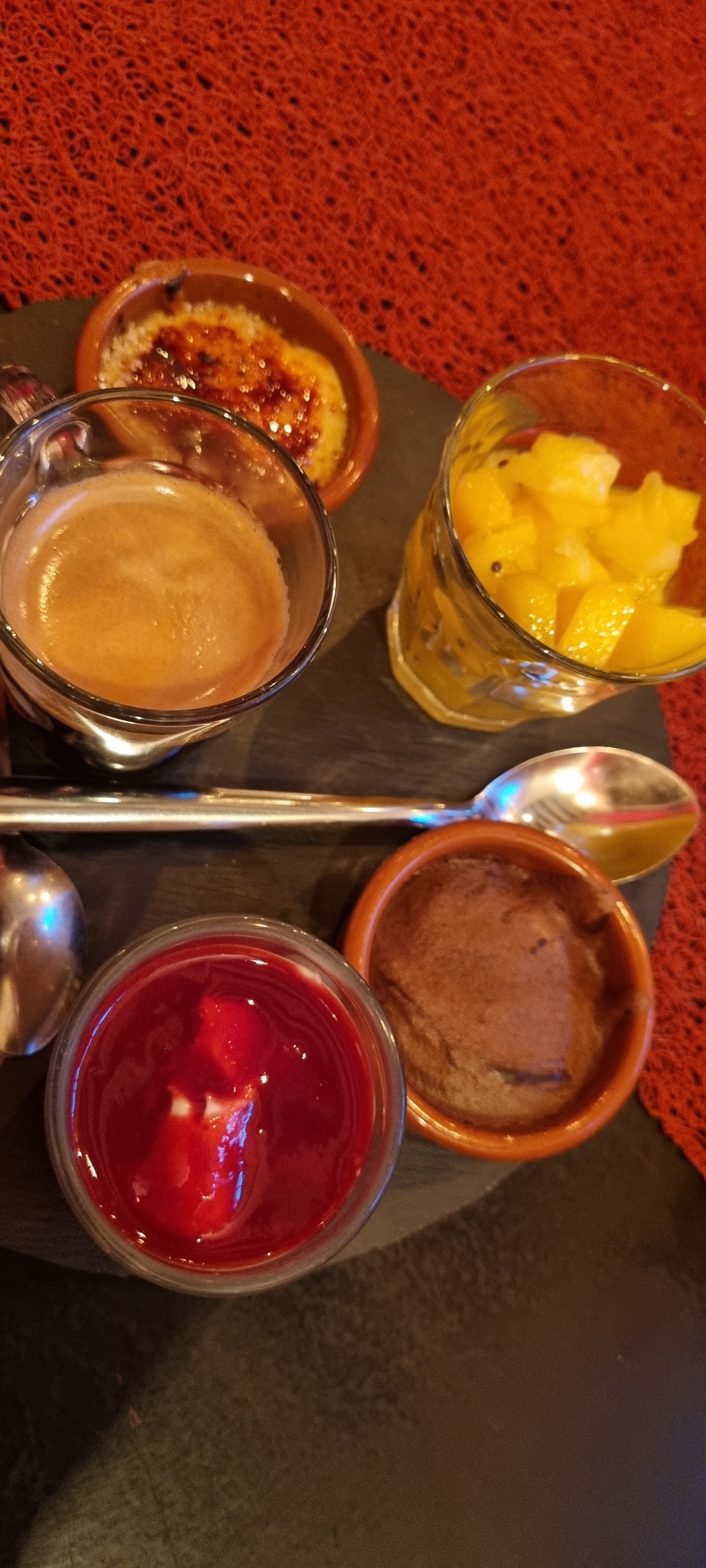 Très bonne adresse pour manger des tapas à plusieurs, ils sont tous très bon pour les avoir tous commandé. Certains manque un peu de quantité comme les brochettes ( que une brochette malheureusement ). Personnellement j'ai beaucoup aimé les desserts, et plus particulièrement la crème, même si j'aime quand les crèmes sont un peu plus croustillantes sur le dessus, elle reste excellente et très bien pour finir le repas sans en avoir trop. Je recommande !
