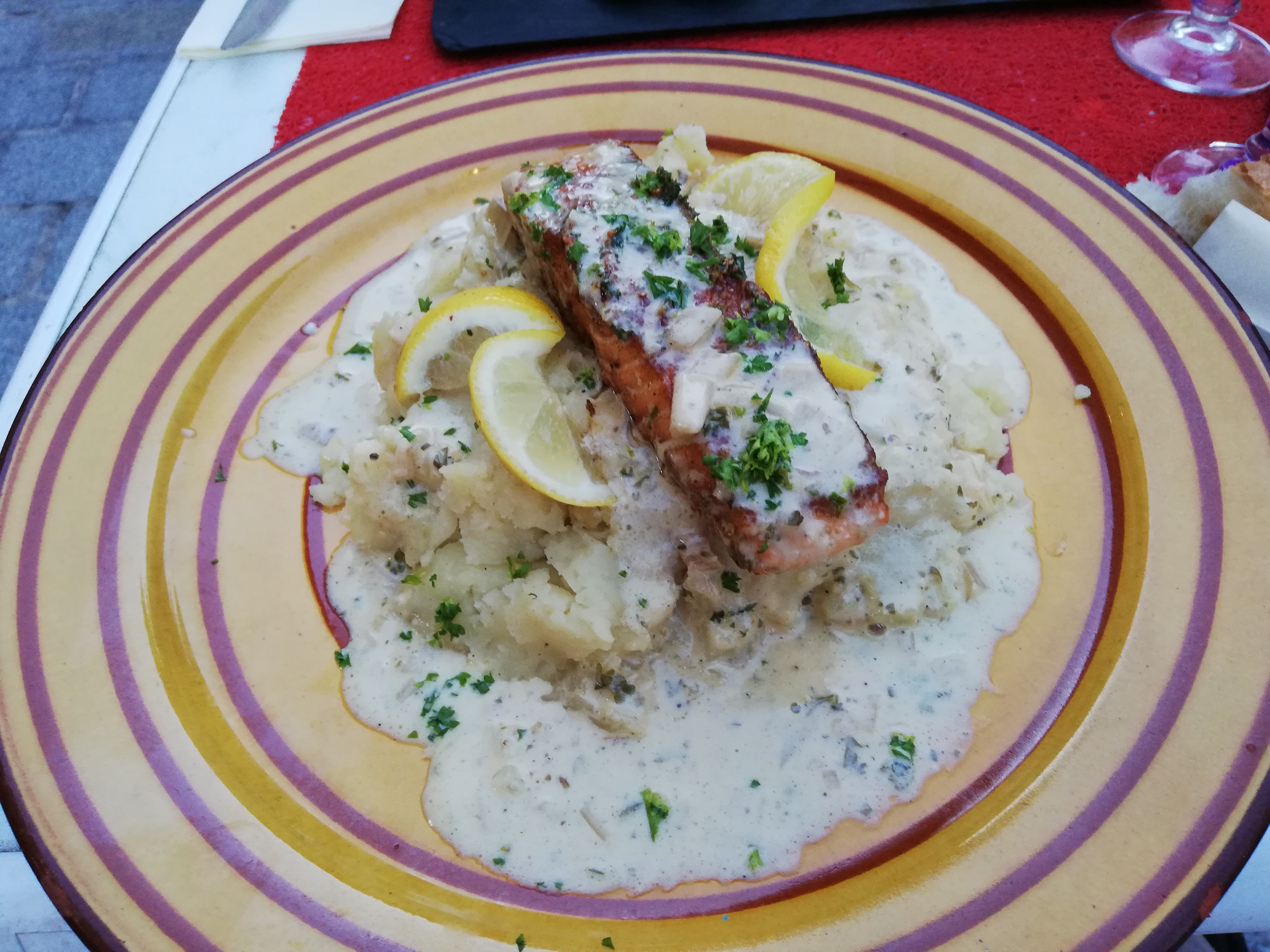 Vous trouverez ce restaurant sur une petite place associé à d autres restaurants. Il y a une dizaine de table dehors. Et une vingtaine à l intérieure. Attention pour les personnes à mobilité réduite les toilettes sont à l étage. Conseil réserver. En ce qui concerne les serveurs: nous nous sommes installer à une table pour laquelle on nous à demander de changer car elle était réservé( en 1 heure aucun client pour cette table) . Notre commande s est perdue : résultat les personnes arrivées après sont servis avant. Les plats sont bons, comme à la maison. Toutefois je regrette qu'on me sert des toasts avec du pain blanc non doré à l huile, avec une garniture de type un morceau de toastinette un cornichon. Bref la première impression : un restaurant qui sert des plats très simples, corrects, un manque d organisation et de courtoisie..