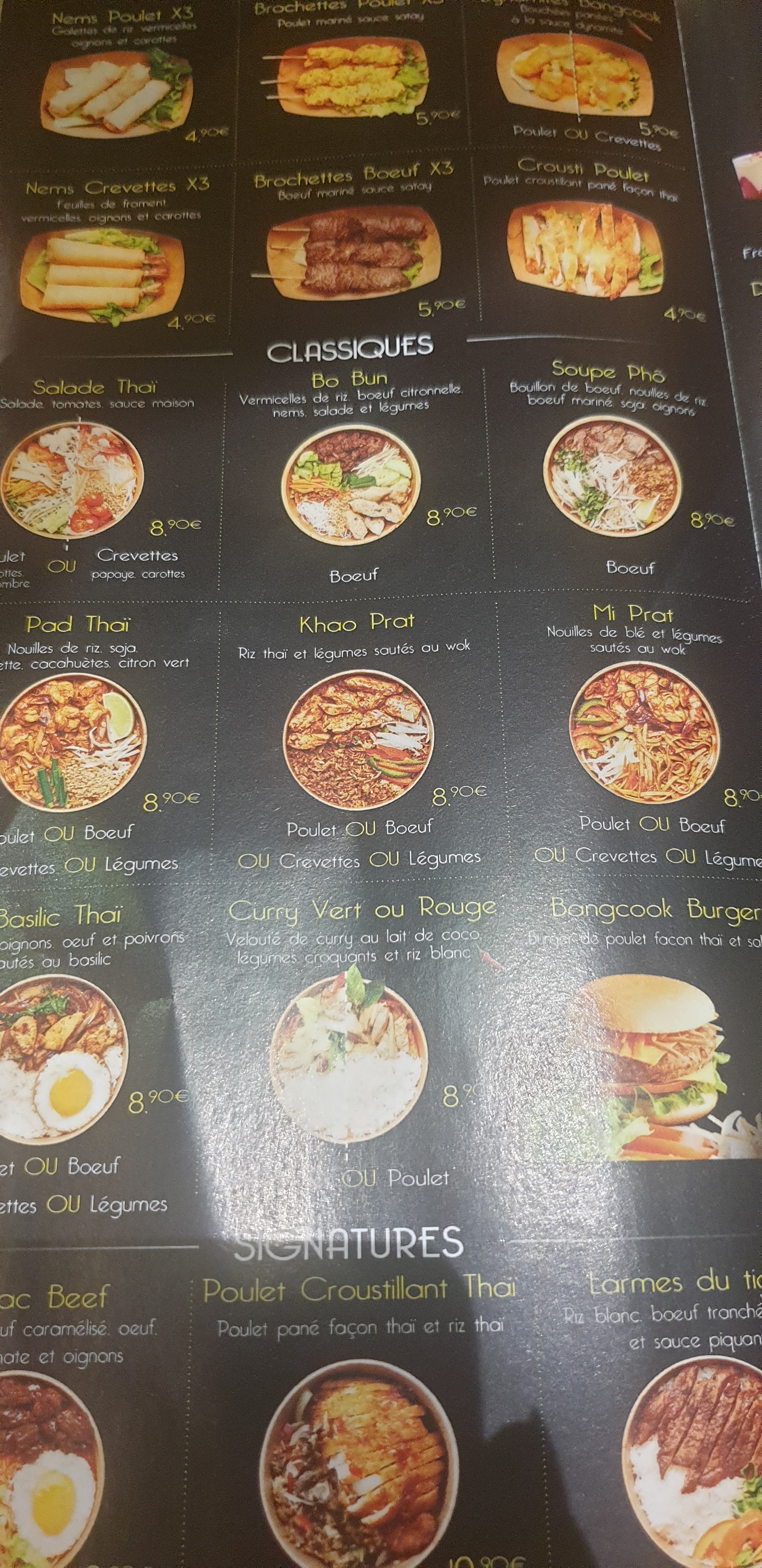 J'avais mis 5 étoiles. Le restaurant a malheureusement bien changé depuis son ouverture. Ils obligent les clients à aller commander à la borne alors qu'il y a quelqu'un à la caisse. La borne affiche des plats non disponibles alors qu'ils sont dispo et inversement. Côté nourriture, ça a bien changé aussi. Des samoussas banane chocolat avec de la salade en dessous, des dynamites crevettes pas cuites et un khao prat crevettes sans goût avec des crevettes juste décongelés et posées au dessus du riz.