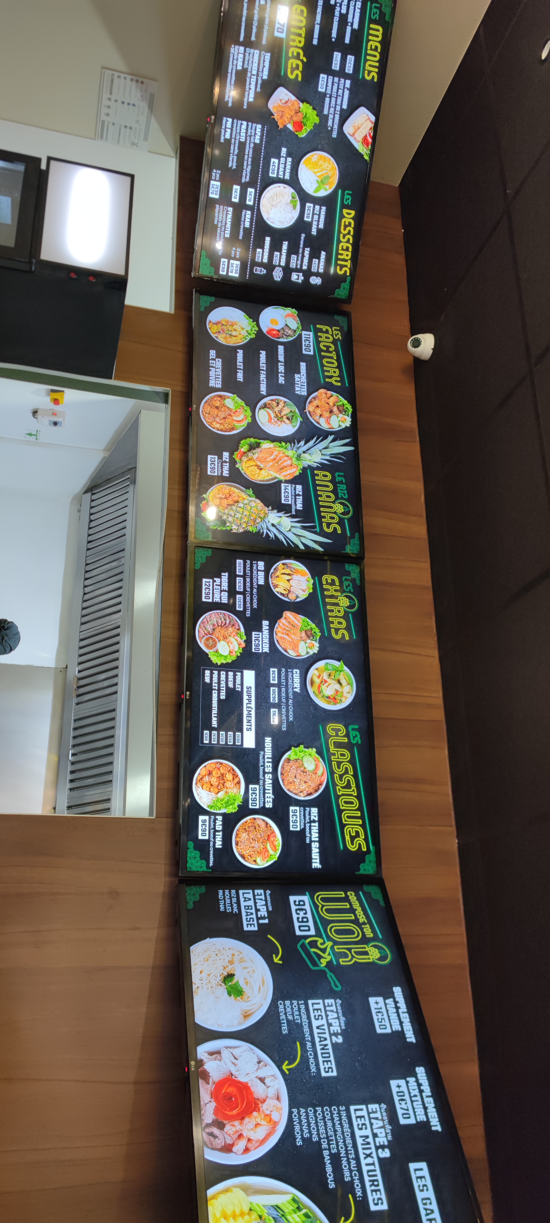 Je vous recommande le menu Bangkok poulet qui est accompagné d’un délicieux riz thaï. La viande n’est pas très tendre mais à part cela la majorité des plats sont délicieux, les desserts également. Seul bémol le personnel très moyen, je parle notamment des femmes à l’accueil qui ne sont pas du tout pros…