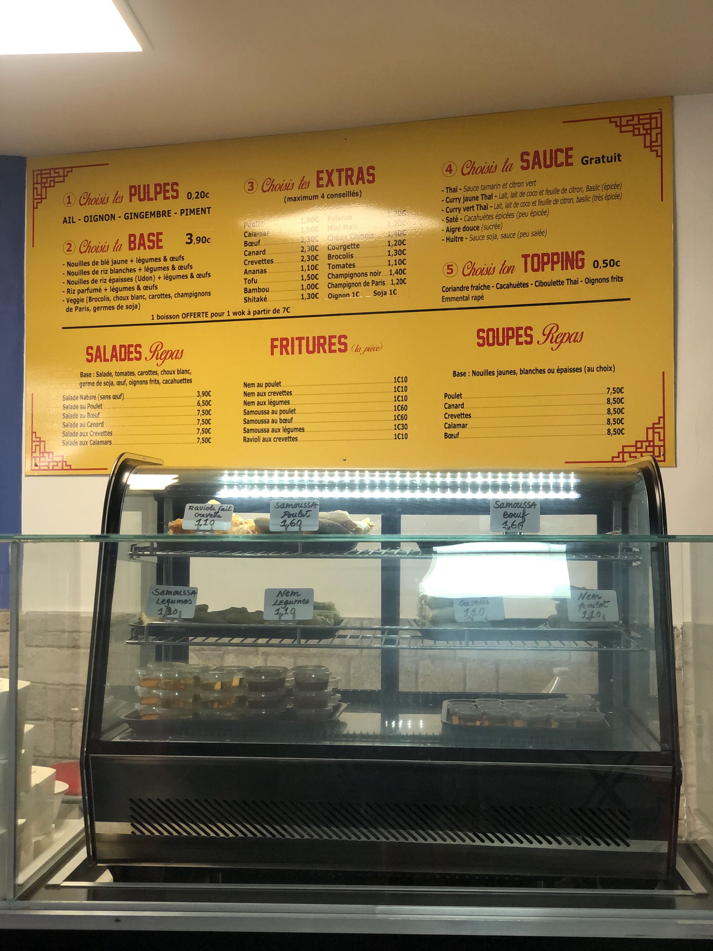 Tarif raisonnable un peu d'attente choix varié de wok ou salade