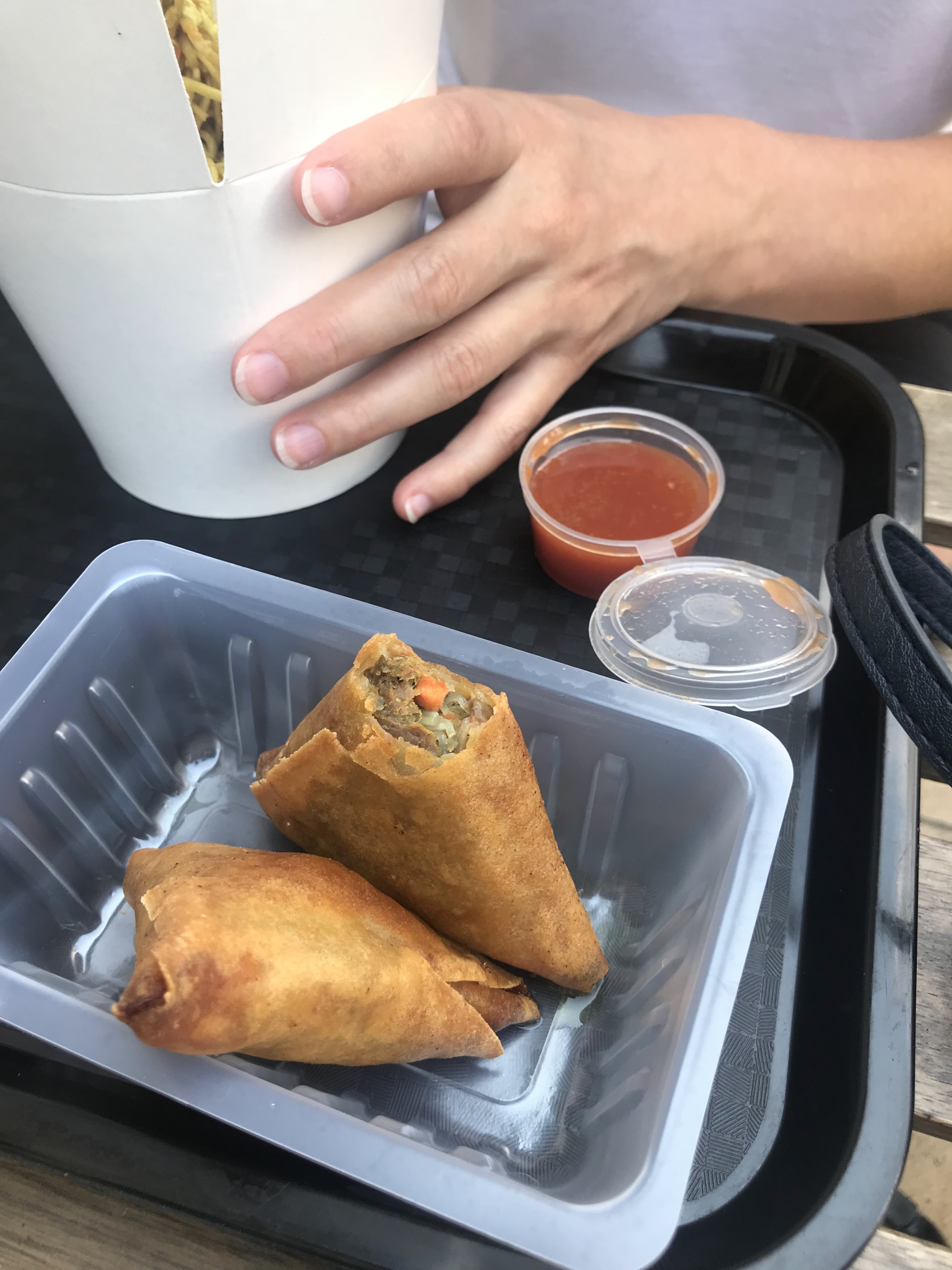 Excellente cuisine de rue thaïlandaise authentique! J'ai eu le riz frit et les œufs avec du bœuf et du curry jaune. C'était vraiment bon et un peu épicé. Si je reviens, j'essaierai probablement la sauce au curry vert qu'on m'a déconseillé d'essayer cette fois-ci car la dame derrière le comptoir a dit qu'elle était très épicée. Nous avons également pris le samosa au bœuf, très bon également. Prix raisonnable et service correct.