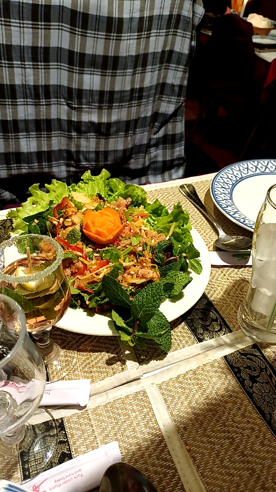 Accueil super souriant avec cocktail de bienvenue. Vaste choix de spécialités, pour ma part salade de calamars et boeuf aux épices thaï (peu relevé) avec du riz gluant 😍 le tout pour 25€. Rapport qualité-prix correct. J'y retournerai