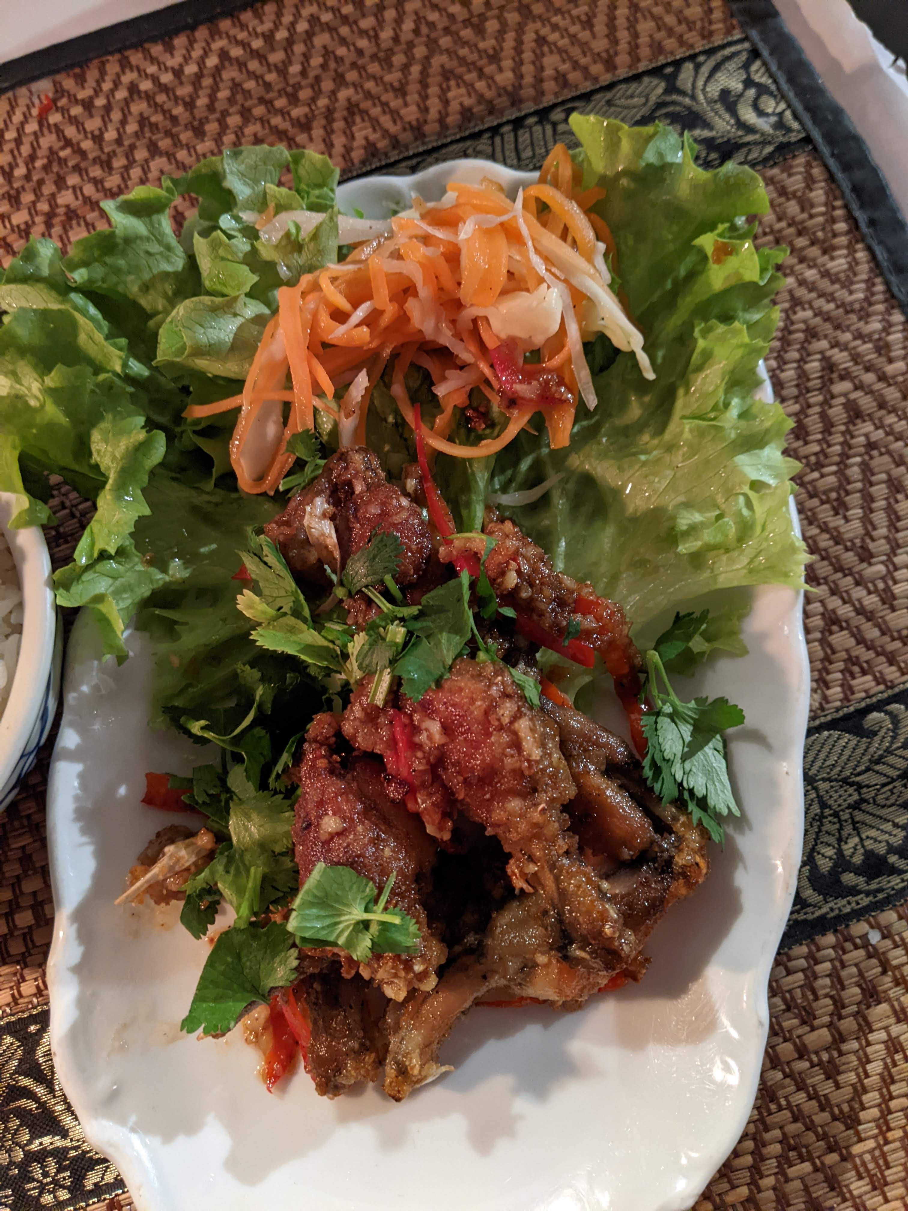 Le patron est un pur génie, très drôle et sympathique. La bouffe est bien relevée et très bonne, les portions sont biens. Je vous conseille la salade de boeuf aux herbes aromatiques qui est dans les spécialités de la maison. Attention cependant à la sauce pour les chips aux crevettes, prenez en avec modération parce que c'est bien chaud.