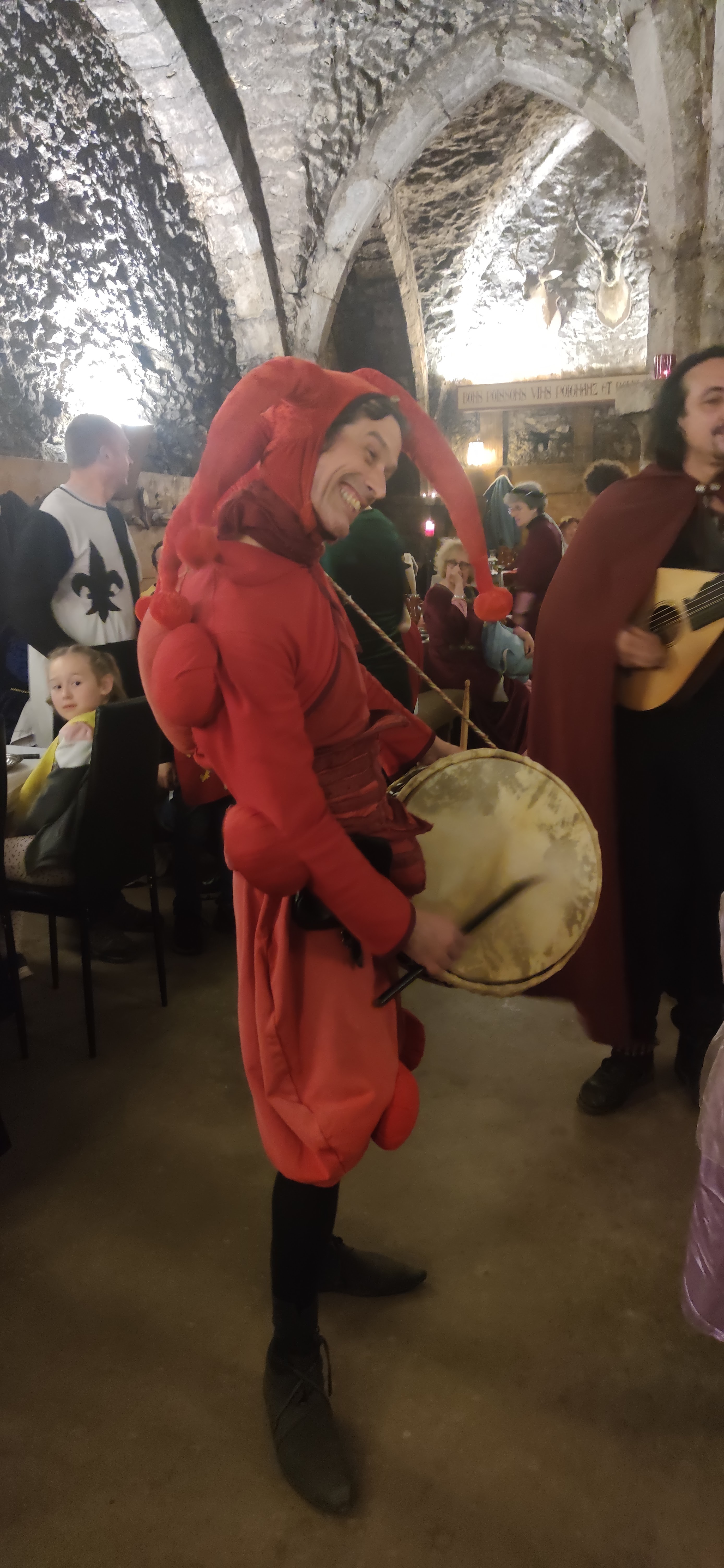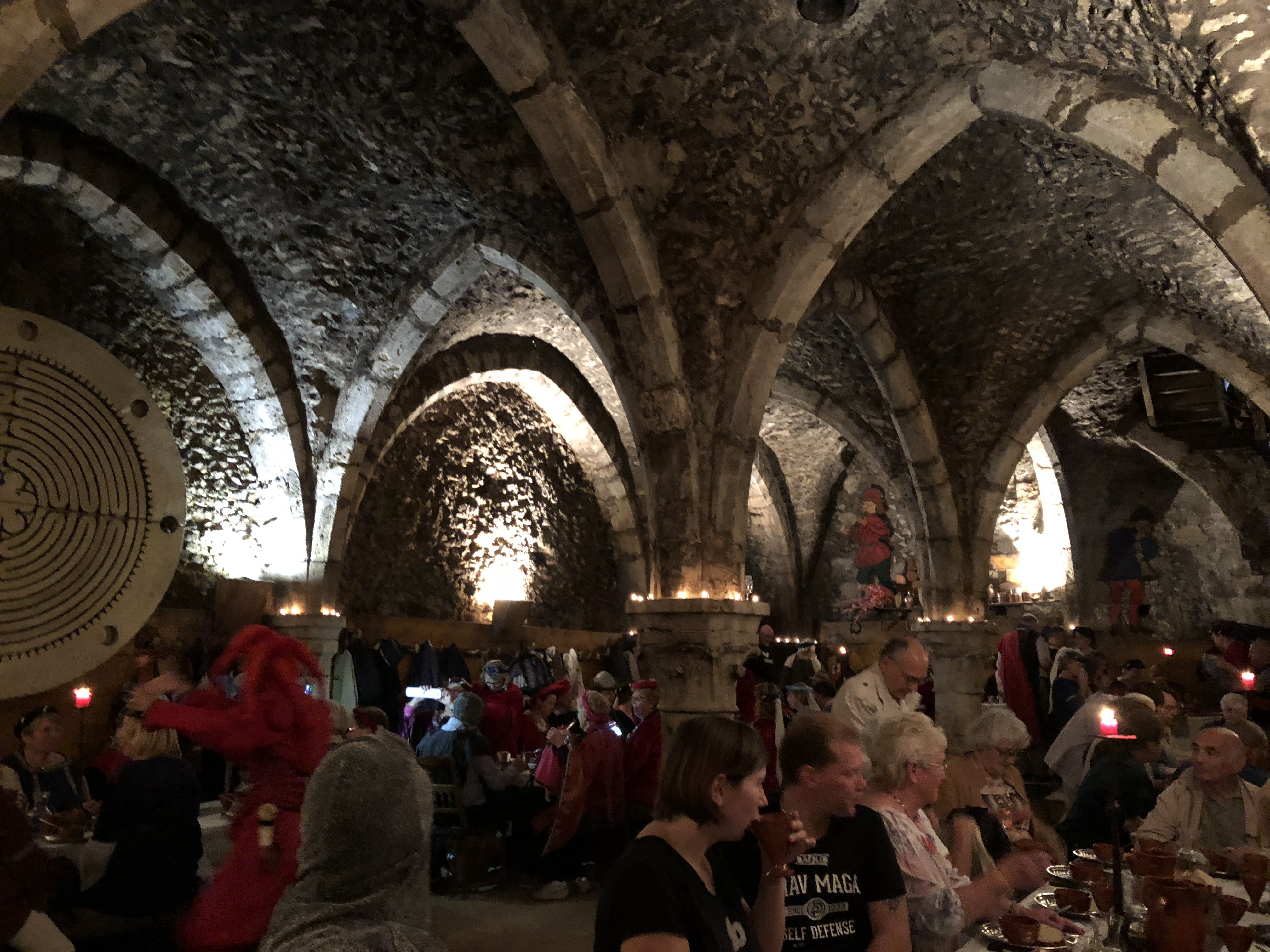 Dépaysement total. Déguisements indispensables et prêtés. Magnifique cave voutée. Repas copieux. Animation de qualité par des jongleurs. Très bel après midi. Attention ne pas oublier une petite laine...il y fait très frais.