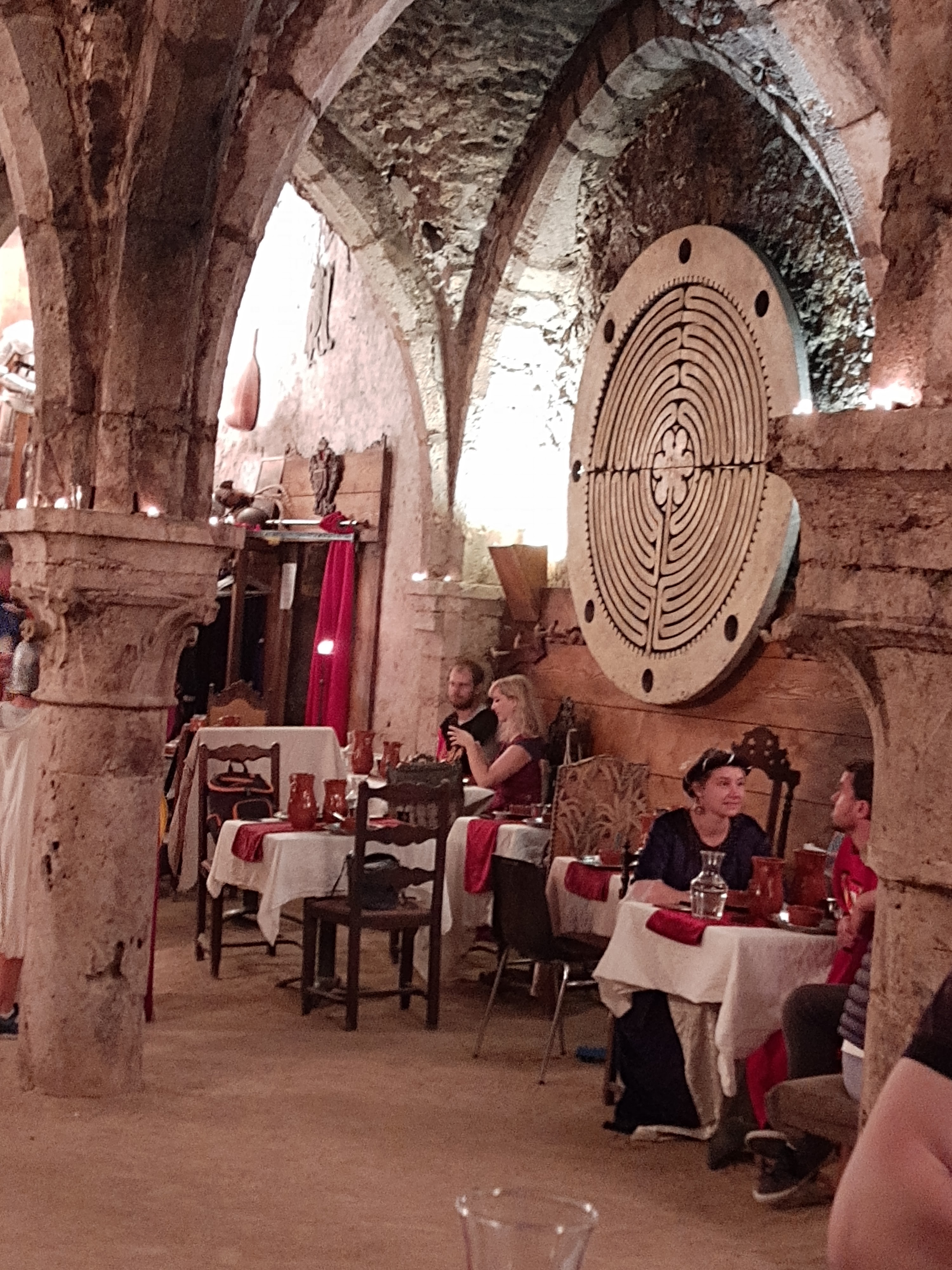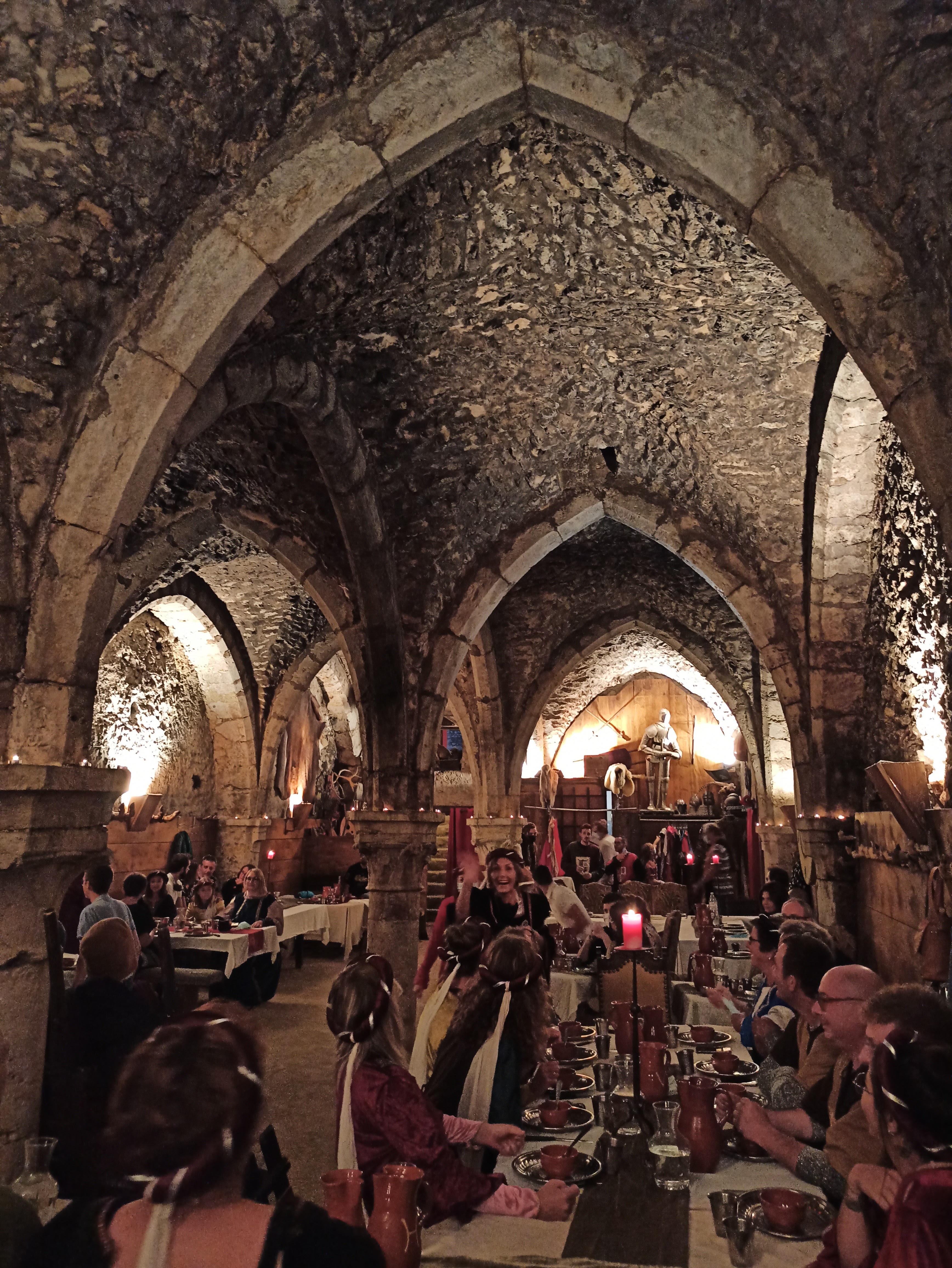 Nous avons passé une super soirée. 3h de spectacle et de dégustation de plats médiévaux. Le restaurant est dans une salle base (où les commerçants gardaient leurs produits) donc très sympa. Avec les déguisements on se sent dans une autre époque.