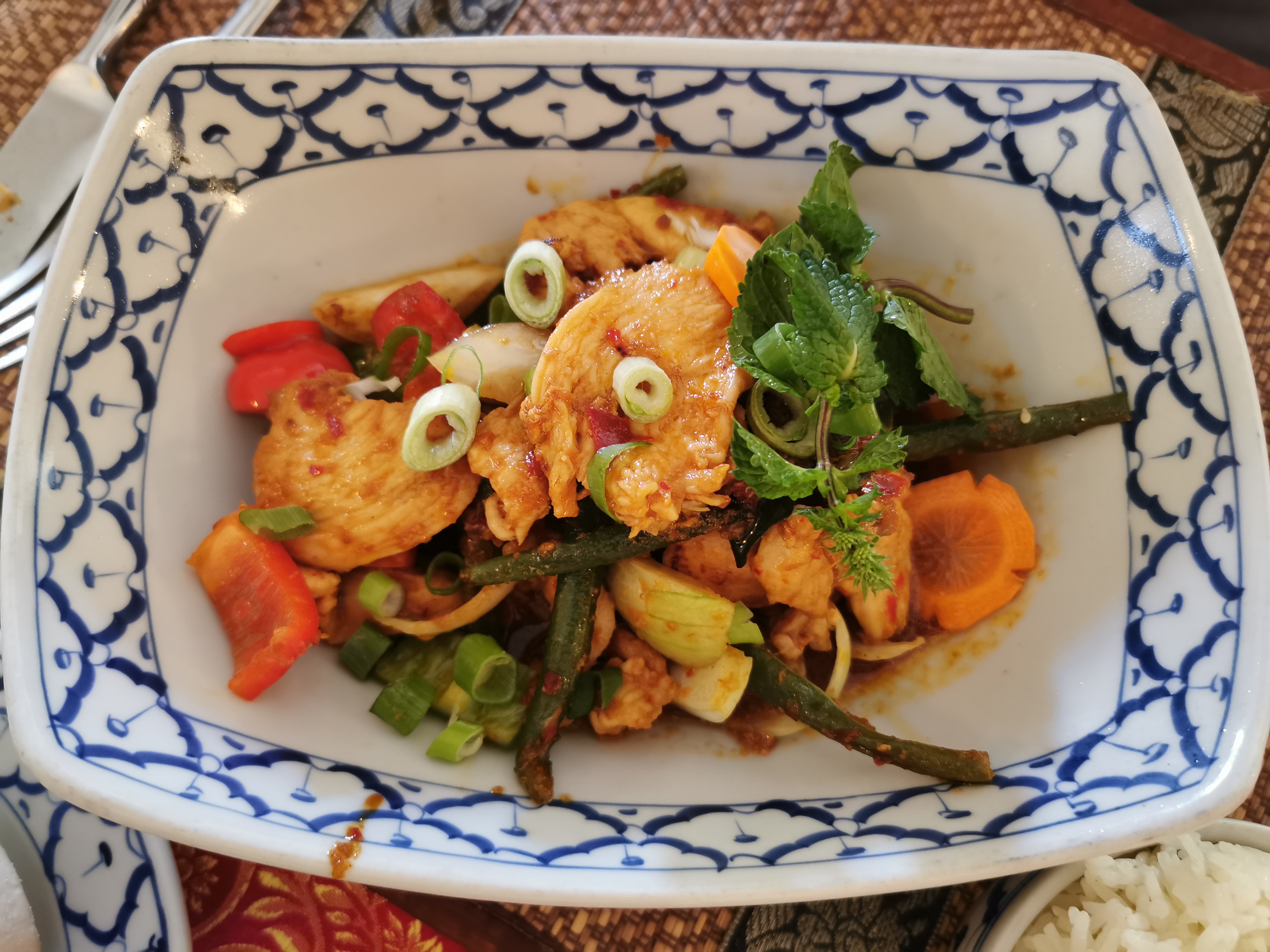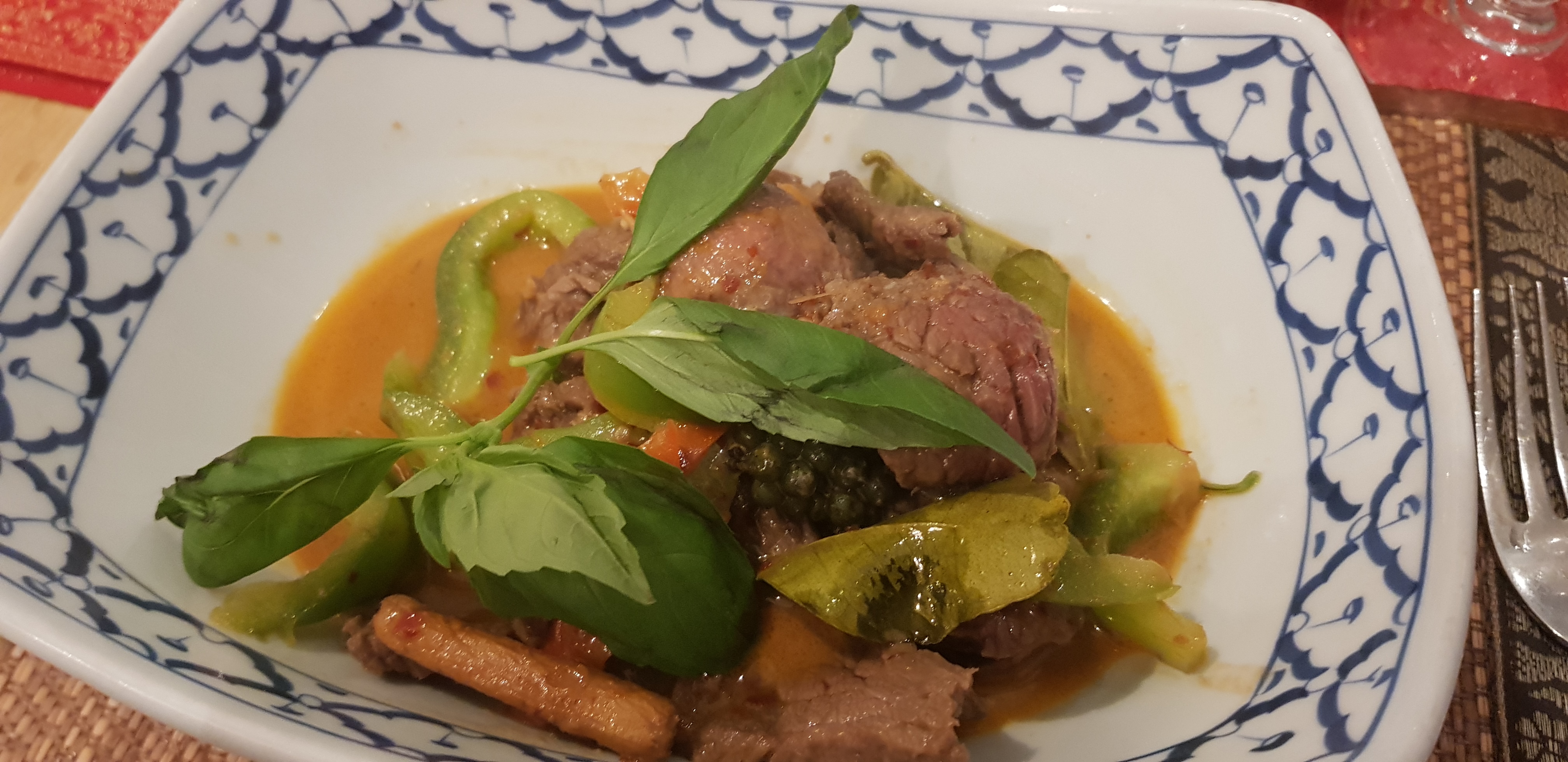 Très bon, curry vert porc aubergine basilic service agréable je recommande