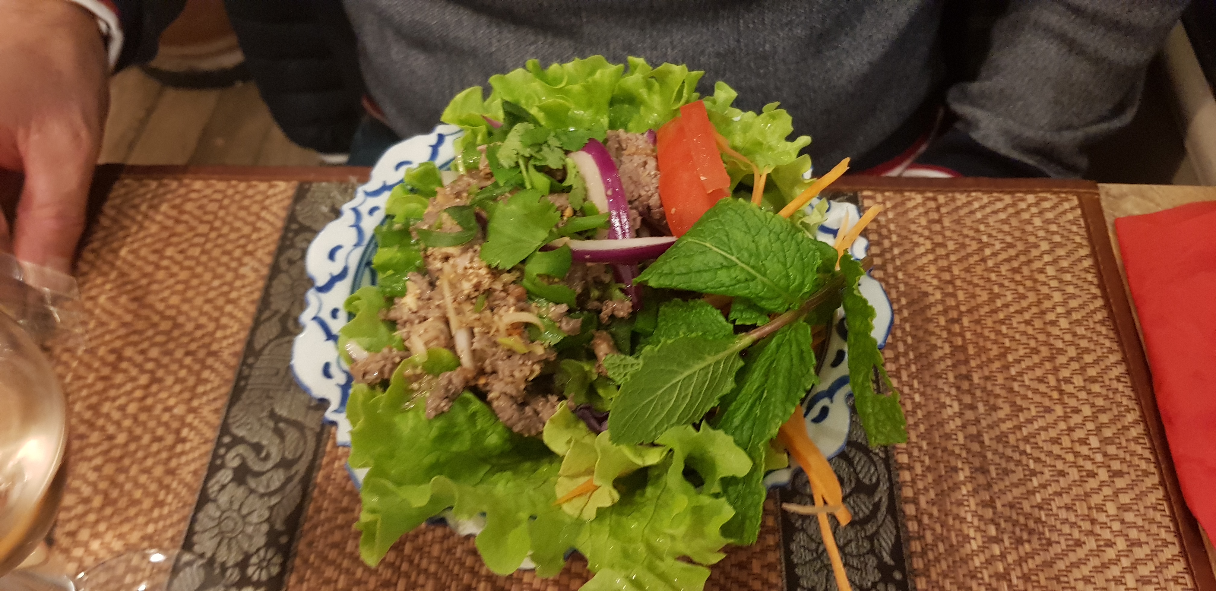 Plus jamais ! Attente longue. Salade de papaye faite avec une vinaigrette de sauce pour nem au lieu de la vinaigrette traditionnelle... J’ai commandé un lap de bœuf cru et la serveuse me l’a apporté cuit. J’ai précisé que c’etait cru que je le voulais et la serveuse n’a pas daigné s’excuser et nous a répondu que le cuisinier avait décidé qu’on devait le manger cuit. On a de suite compris en goûtant la viande car elle n’était absolument pas tendre ! Nous avons retrouvé un cheveu également mais exaspéré, nous n’avions pas prit la peine de le signaler. Ils ont collectionné trop de mauvais pas avec nous ce jour là. Nous n’avions pas eu d’assiettes pour pouvoir consommer nos plats et la facture fut salée ! 1ère et dernière fois ! Plus jamais ce restaurants. A fuir !!